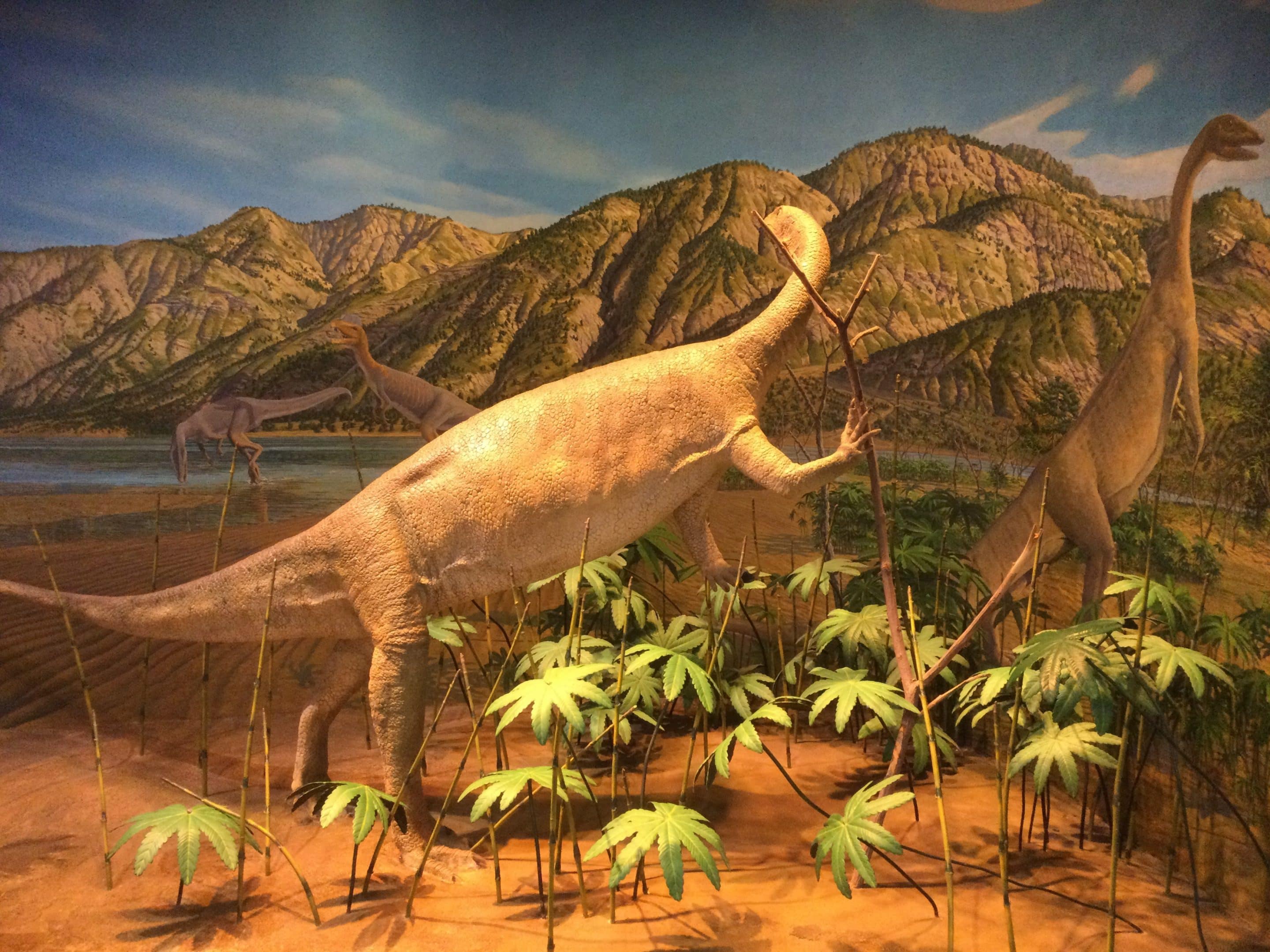 A diorama depicting the Connecticut River valley at the time that dinosaurs left their footprints in the mud that eventually became the fossil footprints now found along the Connecticut River Valley.