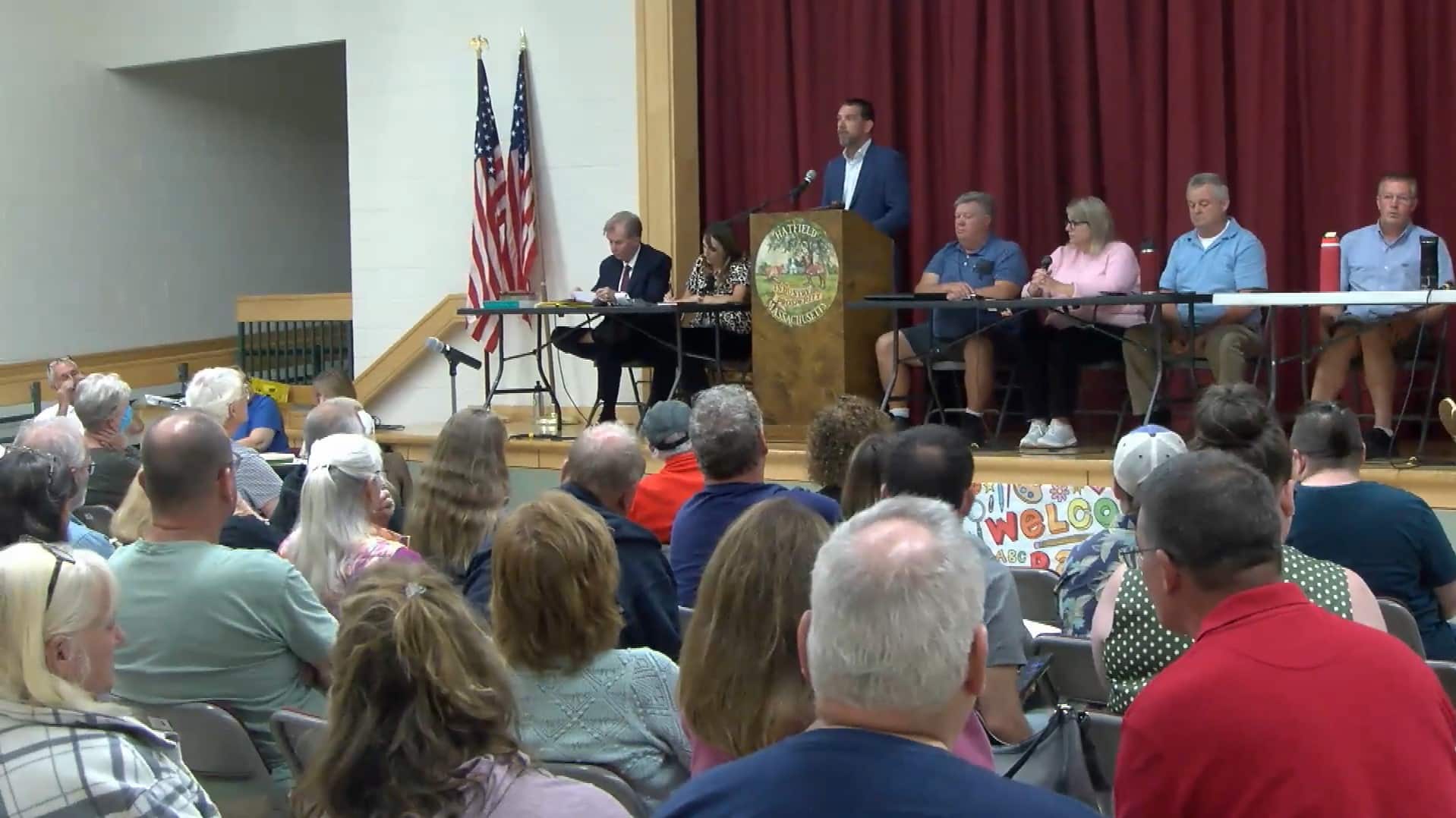 The Hatfield public met at Hatfield Elementary School to accept the borrowing of $375,000 for culvert restoration on Main Street.