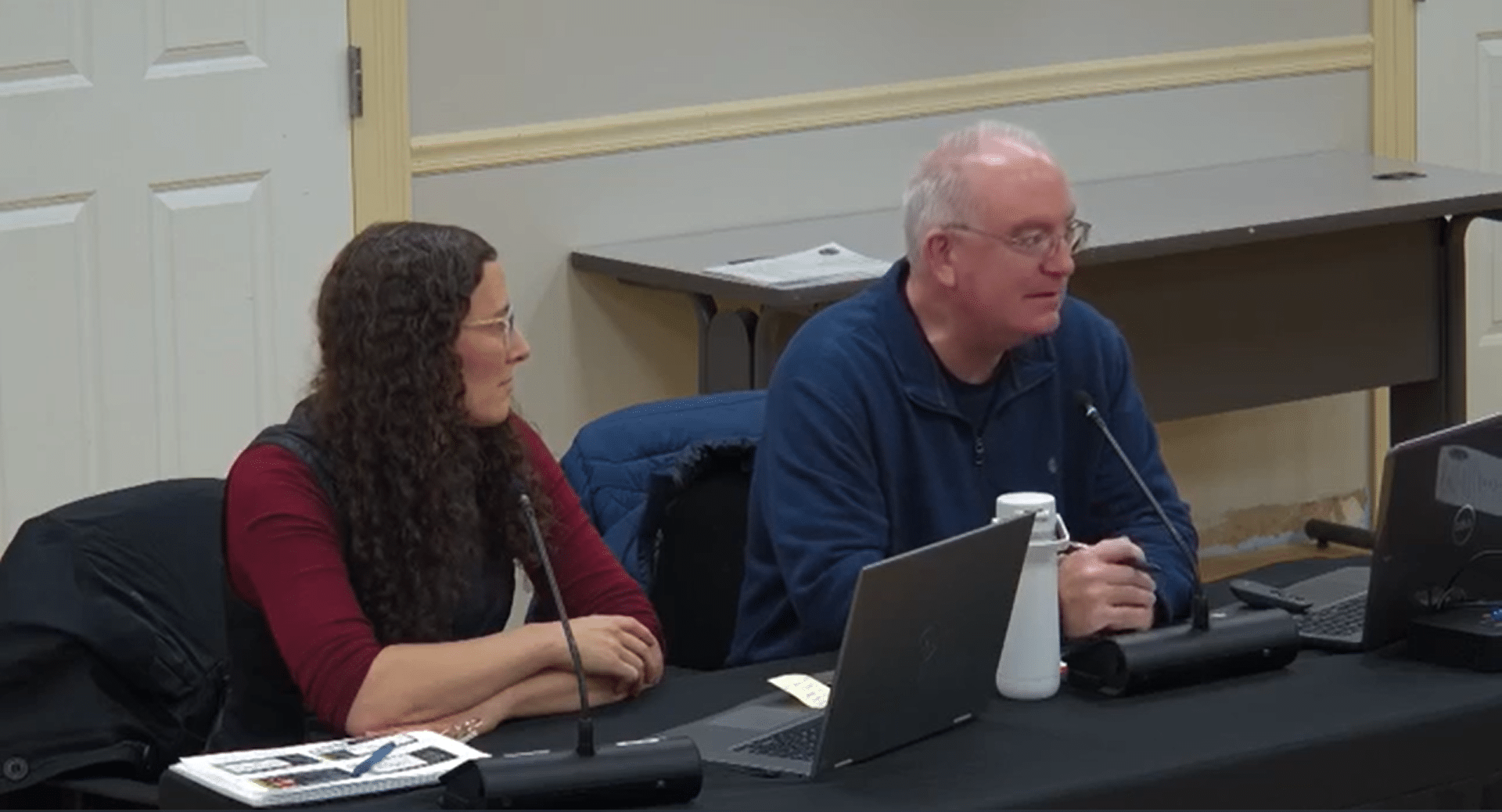 Mayor Chris Johnson (right) and Town Engineer Michelle Chase (left) present the town’s pavement management plan.