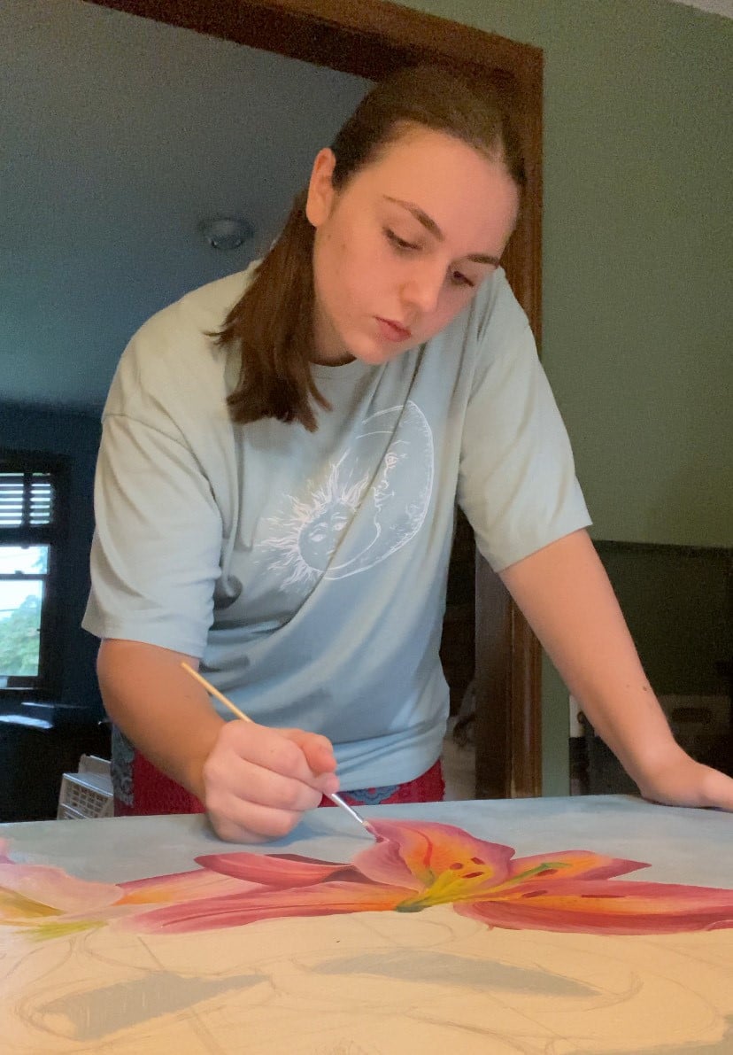 Couture talked more about her work and said, “As a rising senior in high school, I’m dedicated to art both inside and outside of the classroom. My style, which is mainly seen blending vibrant colors with impressionistic freedom, incorporates pencil studies as well, which are influenced by the thousands of sketches in my schoolwork margins.”