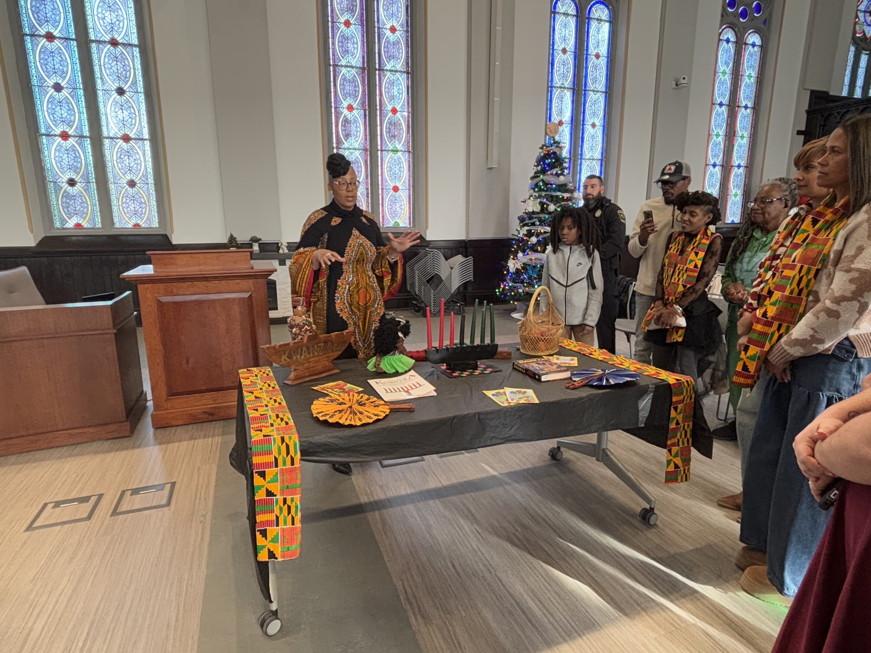 Kwanzaa Collective in the Valley President Ayanna Crawford discusses the traditional Kwanzaa table layout.