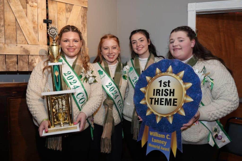 CHICOPEE — Holyoke’s annual St. Patrick’s Parade was an eventful one for Chicopee St. Patrick’s Day Parade Committee. The Chicopee St. Patrick’s Day float, titled “New Beginnings”, won the William C. Lunney Memorial Award in the Irish theme category with its four teacups designed for the court members, Giannalee Beach, Lilian Young, Morgan Presnal and Madelyn Rice.