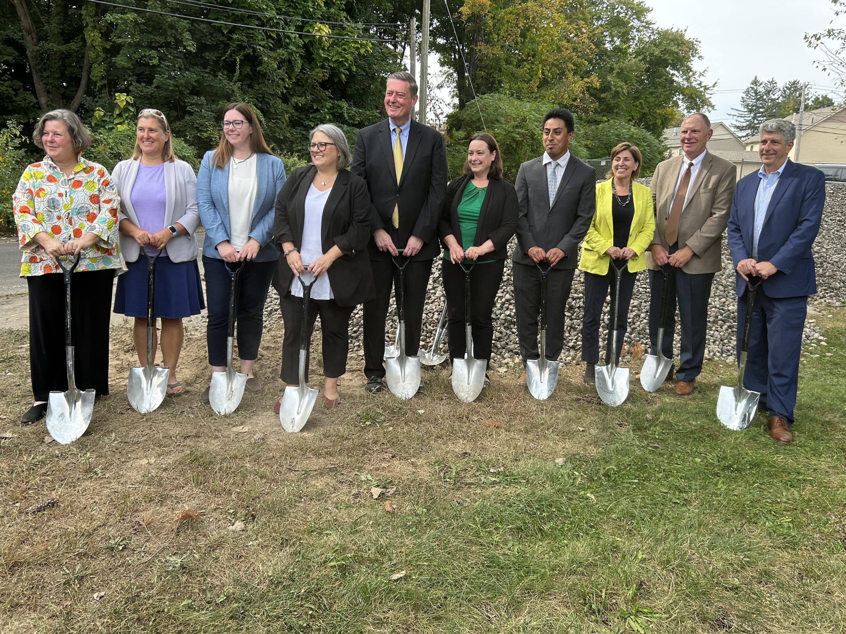 City and state officials grab shovels for the Prospect Place groundbreaking; one of the housing projects that features alternative energy sources instead of fossil fuels.
