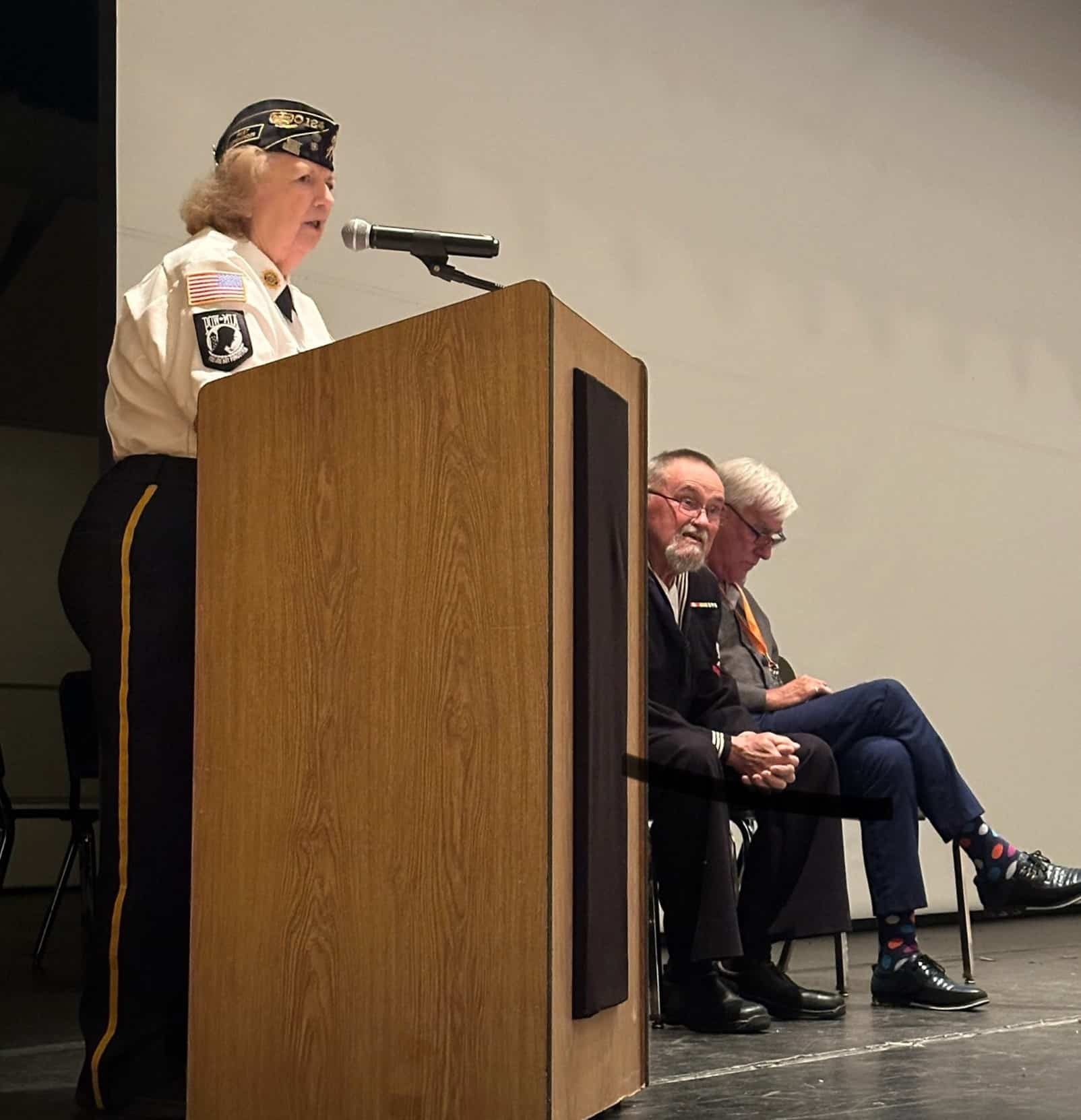 Veteran Ruth Kennedy of Russell speaks to Gateway Regional students at a Veteran’s Day assembly on Nov. 8.