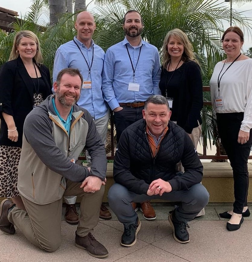 Several Agawam school administrators and teachers visited schools in California and Arizona to pick up ideas to “reimagine” Agawam High School. Pictured at a California school in January are, back row, from left, Mary Lynn Hunter, Scott Cassidy, Ryan Dunphy, Cheryl Salamao and Ken MacDonald; and front row, Tim Karetka, left, and Jim Blain.