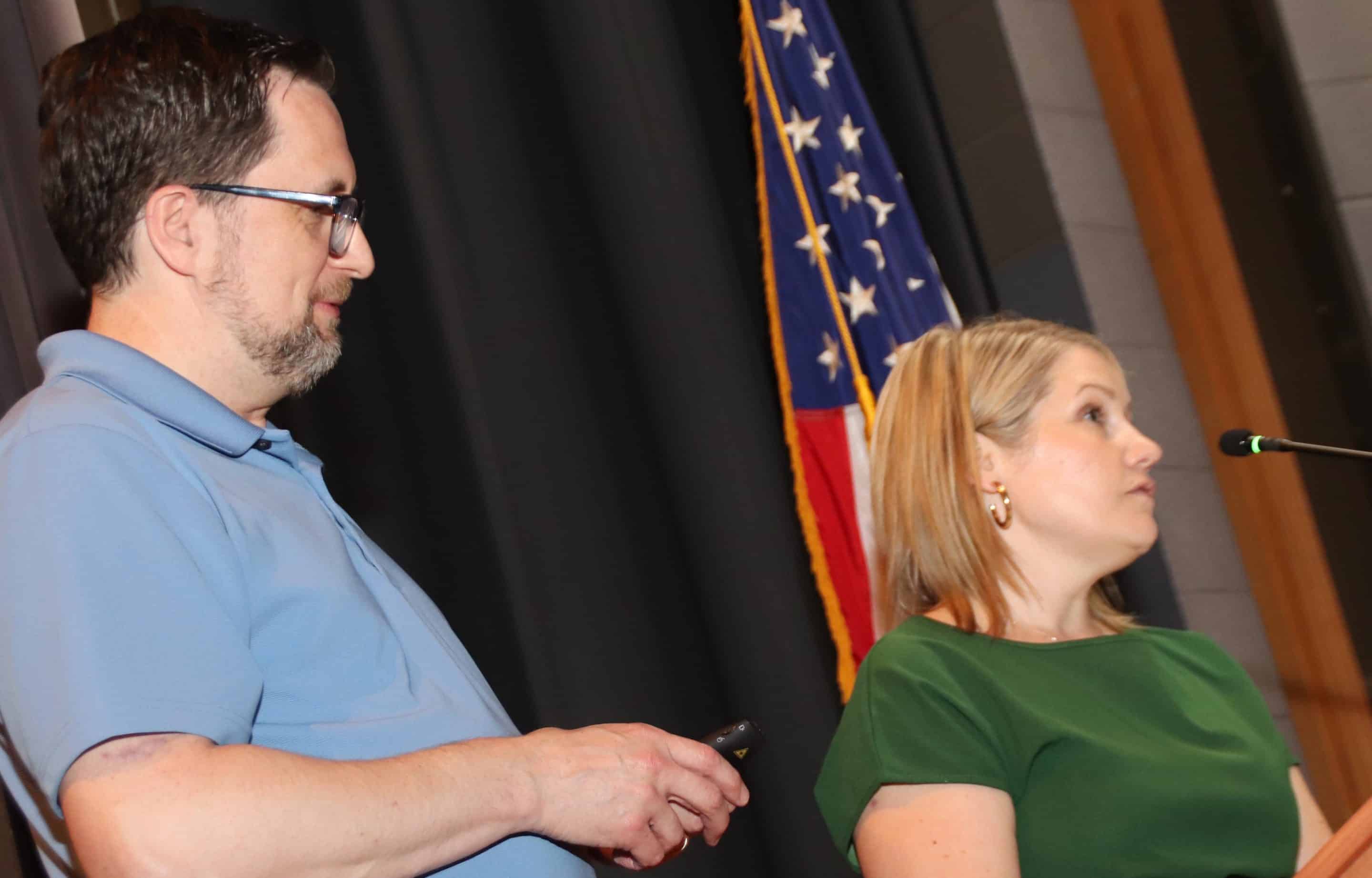 Mary Lynn Hunter, a literacy coach, and Nikali Benkert, a calculus teacher and math instructional coach, made a short presentation about the team’s work at the School Committee’s May 14 meeting.