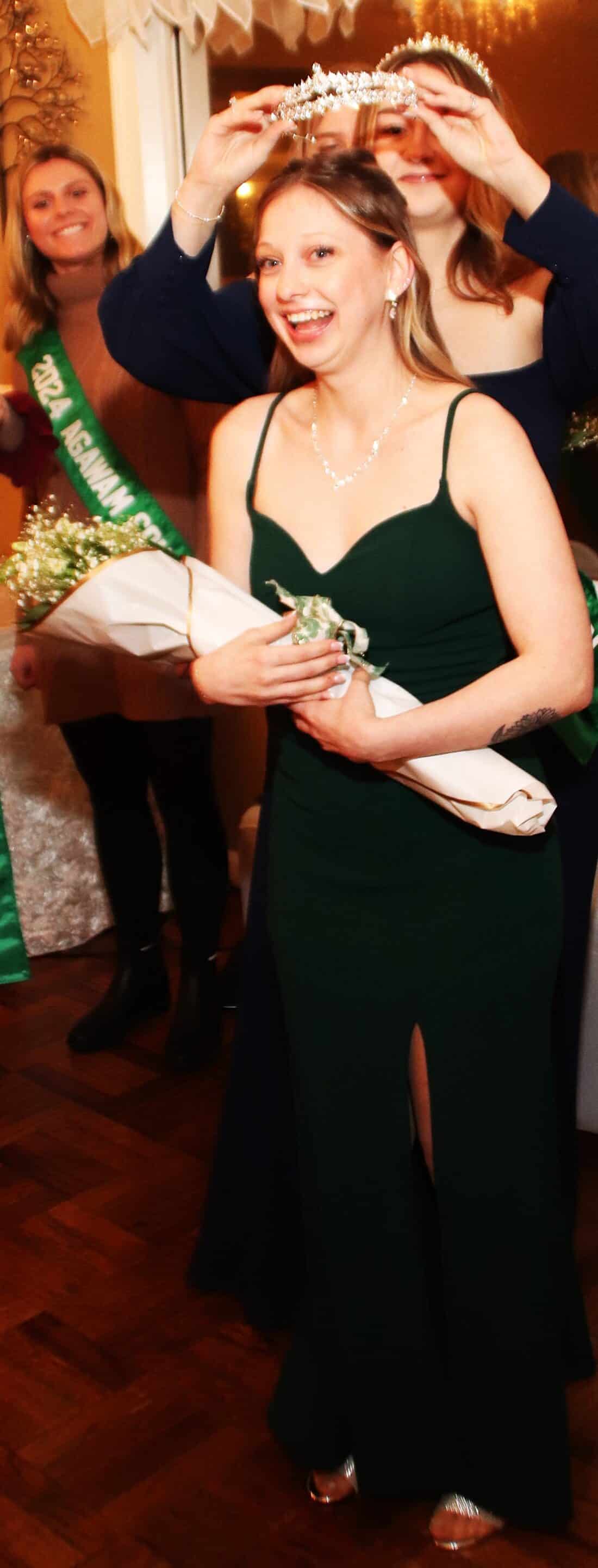 Julia Nicosia can’t help but have a huge smile on her face as she’s crowned Agawam’s 2025 colleen by Rachel Sills, the 2024 colleen, at the Agawam St. Patrick’s Committee’s coronation ceremony on Feb. 8.