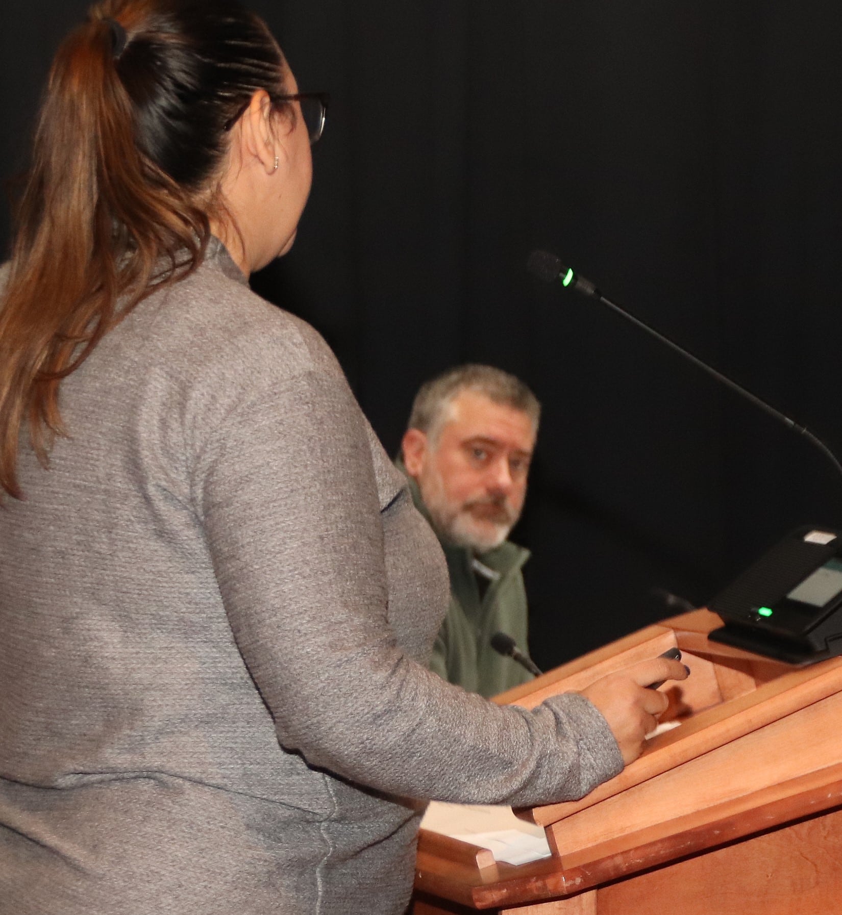 Agawam School Committee member Michael Perry listens as Rosa Rodriguez Pion, director of English Language Education, gives an overview of the district’s multilingual learner program at the committee’s Jan. 13 meeting.