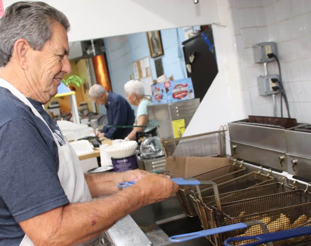 “I don’t like to stand around, and there’s always a lot for me to cook,” he said, adding that he fries about 12 to 20 pounds of potatoes during his shift.