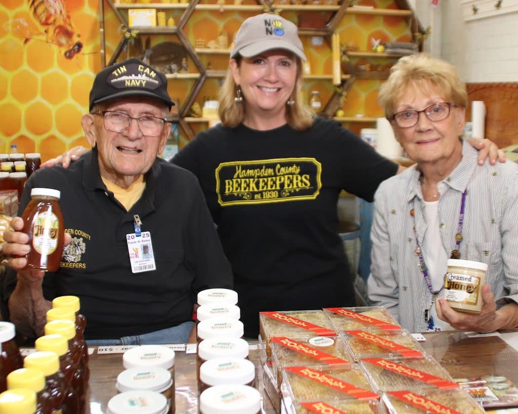 In the Massachusetts Building, Sharon Roulier and her parents, Jim and Pearl Stefanik, were busy as bees at the Hampden County Beekeepers Association booth. In between selling jars of honey, lip balm and skin cream — made from beeswax — the Agawam beekeepers answered questions from fairgoers.