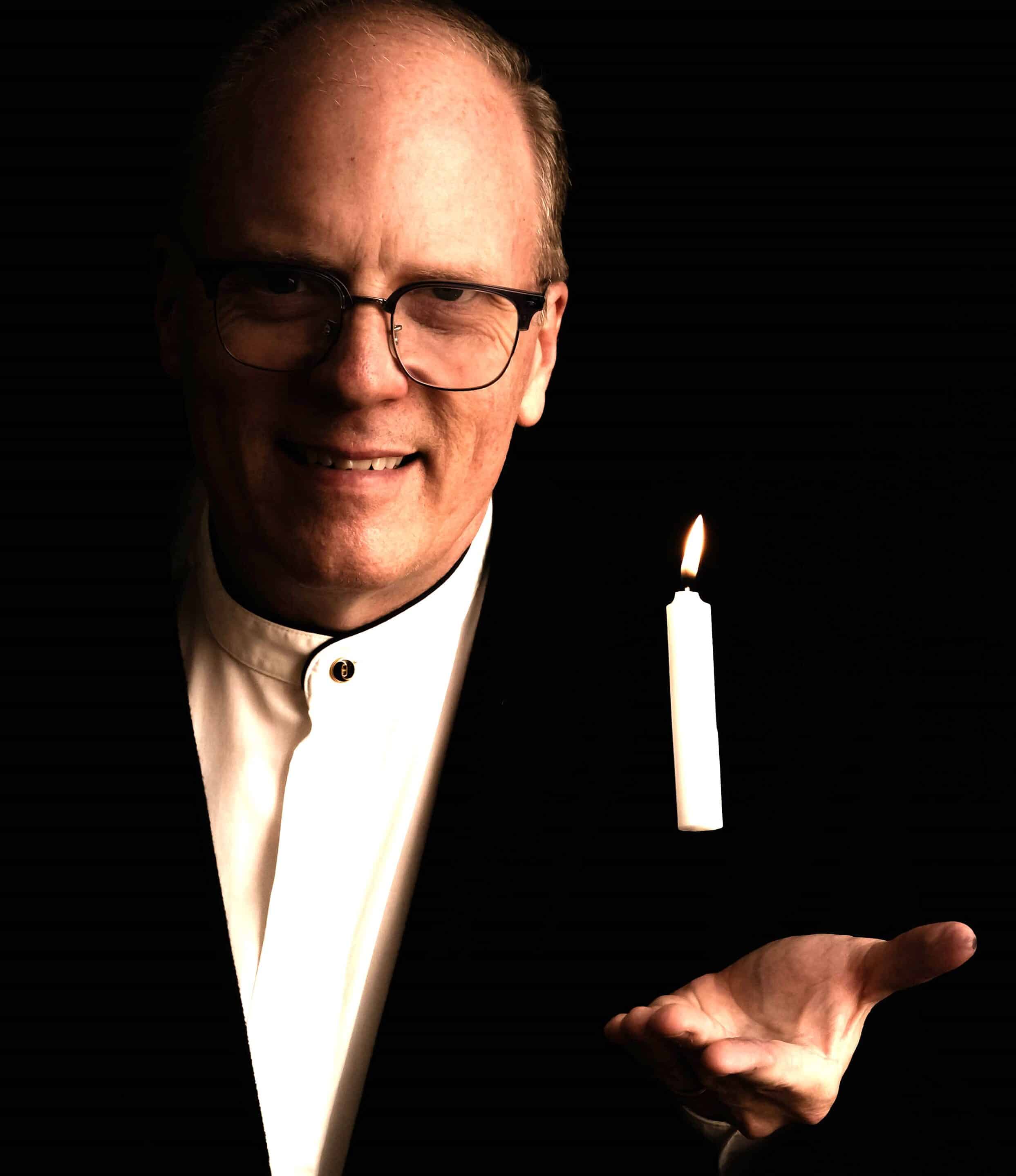 David Reed-Brown, a pastor and a magician, will present a magic show at the Agawam Congregational Church this Saturday, March 28. The Simsbury, Connecticut, pastor used his magician skills to create this candle photo — not artificial intelligence or Photoshop.
