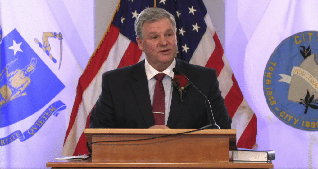 Mayor John Vieau is sworn in for his fourth term as mayor of Chicopee.