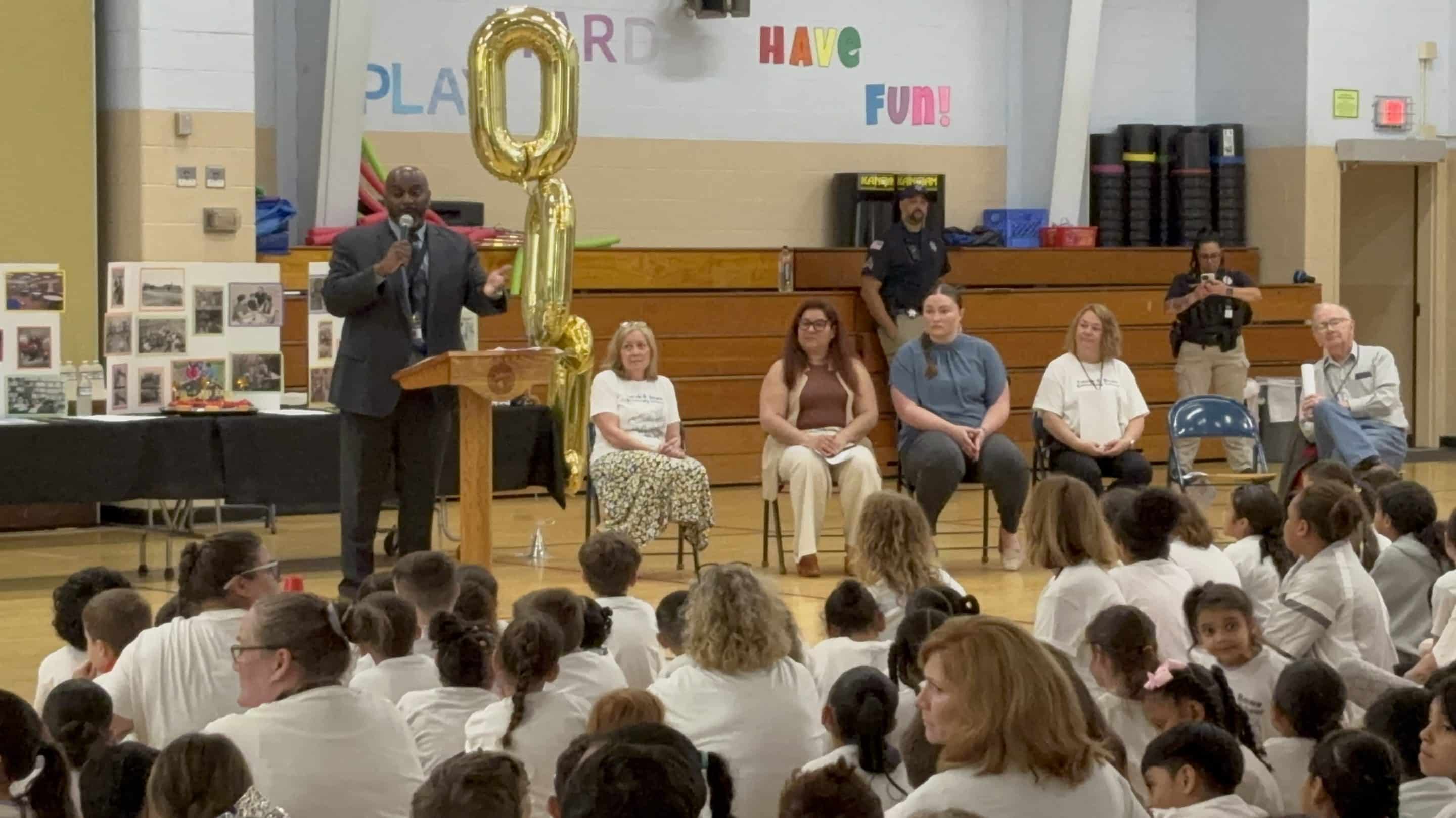 Bowe Elementary School serves students from kindergarten through grade 5. Each class and teacher were at the celebration in special shirts to commemorate the special occasion.