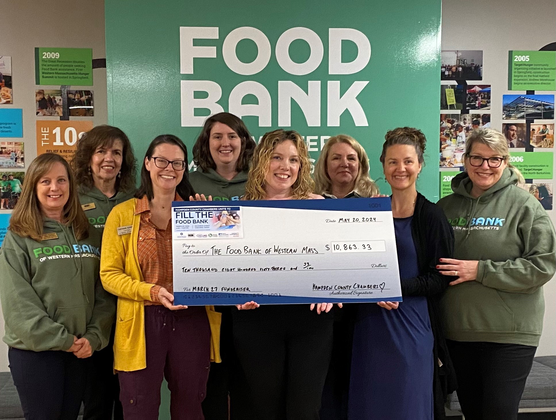 Members from each Chamber of Commerce and the Food Bank of Western Massachusetts take a picture with the monetary donations from the Fill the Food Bank event.