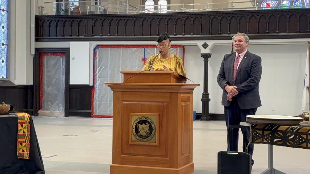 The event concluded with Vieau reading a proclamation to declare Kwanzaa week in Chicopee and banner dropping in the city hall auditorium.