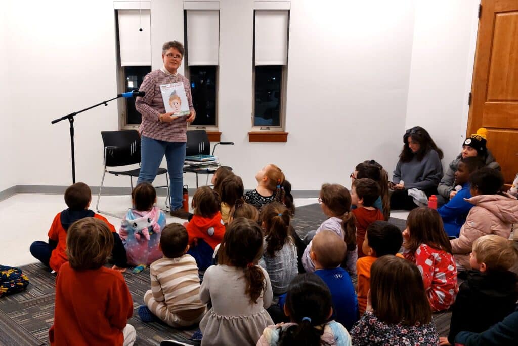“Mrs. O! Mrs. O!” chanted dozens of young children as they sat in rows on the carpeted floor. O’Brien read several picture books and stories for young children, including, “My Dad Is a Tree,” by Jon Agee, “Baby Squeaks,” by Anne Hunter and “Goodnight, Hockey Fans,” by Andrew Larsen. She sang the words to “Your Personal Penguin,” by Sandra Boynton and a song teaching children the right way to flip a page so it is not torn or bent.