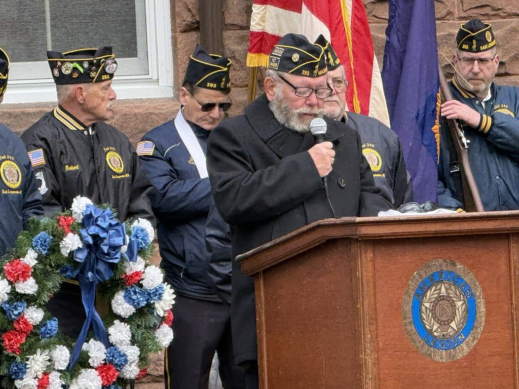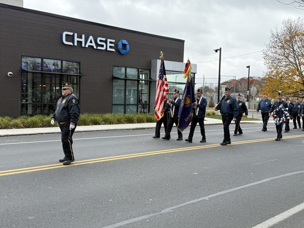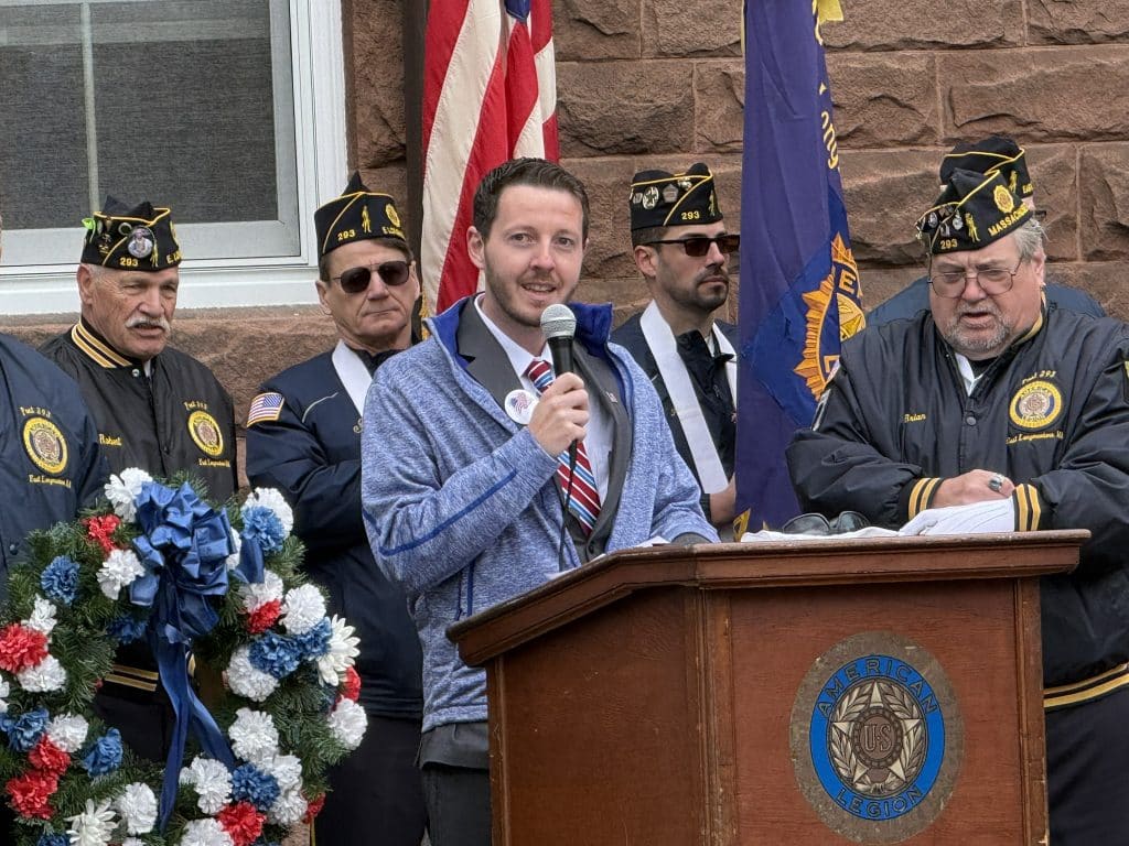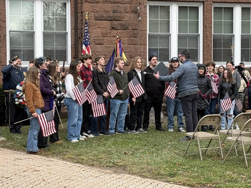 EAST LONGMEADOW — Community members gathered at the East Longmeadow Town Hall on Nov. 11 to honor the veterans of Legion Post 293 and all who have served. The kickoff parade started at Legion Post 293 and marched down Maple Street towards Town Hall. Next to where a half-mast flag flew over the memorials honoring all veterans from East Longmeadow who gave their lives in service, Commander of Post 293 Brian Tidlund led the ceremony through an array of speeches and performances. Town Manager Tom Christensen and Town Council President Connor O’Shea assisted Tidlund in the laying of the wreaths before the conclusion of the ceremony.