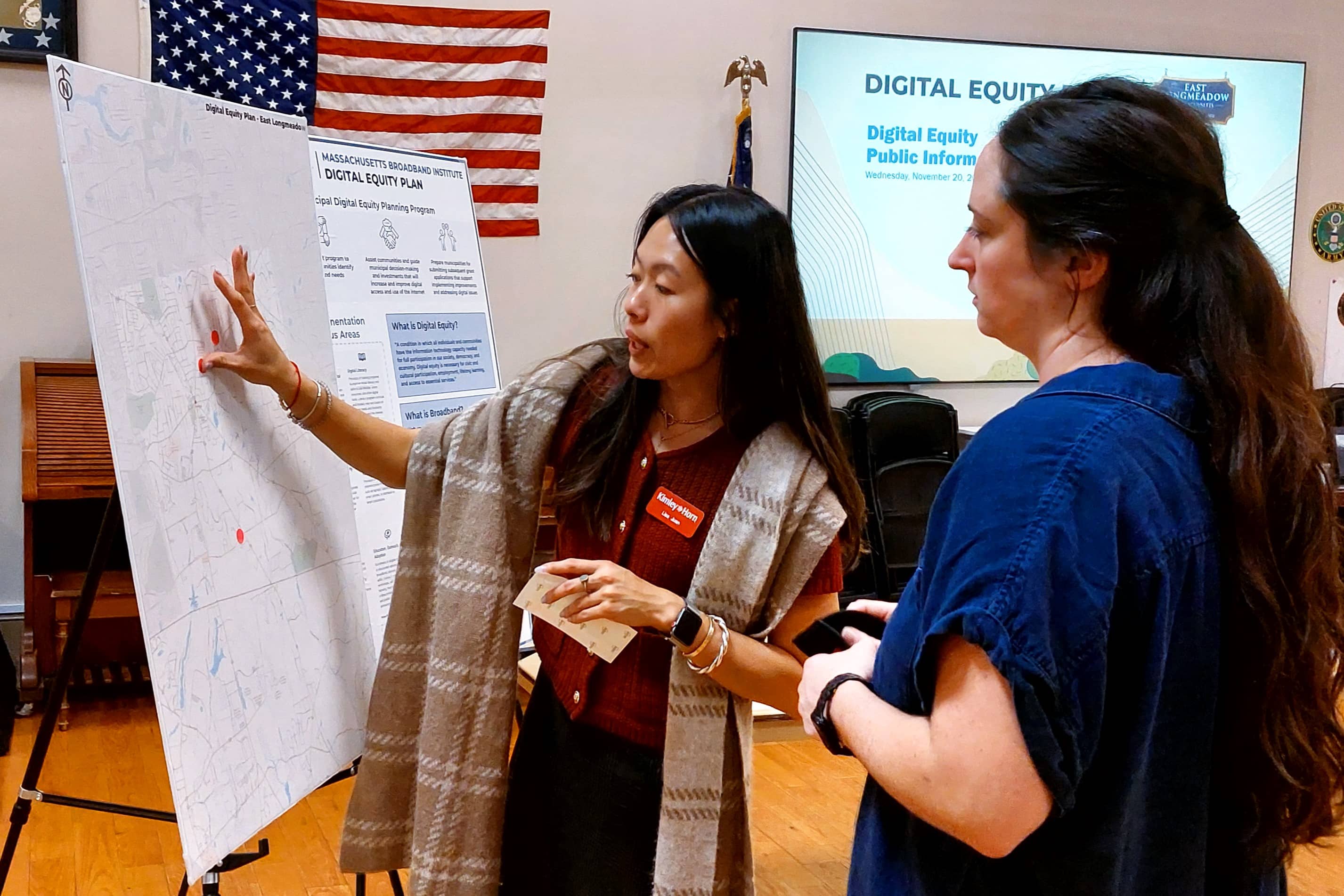 Two of the potential digital inequity solutions that have been identified so far — determining which technology can bring broadband to residents in their homes and modernizing broadband infrastructure in public spaces — can be addressed by municipal fiber. Other possible include hiring staff to coordination with town departments on the implementation of digital equity plans, outreach efforts such as workshops or door-to-door contact, organizing town-run digital literacy programs, and providing refurbished internet-capable devices to certain populations and cellular hotspots to those without stable housing.