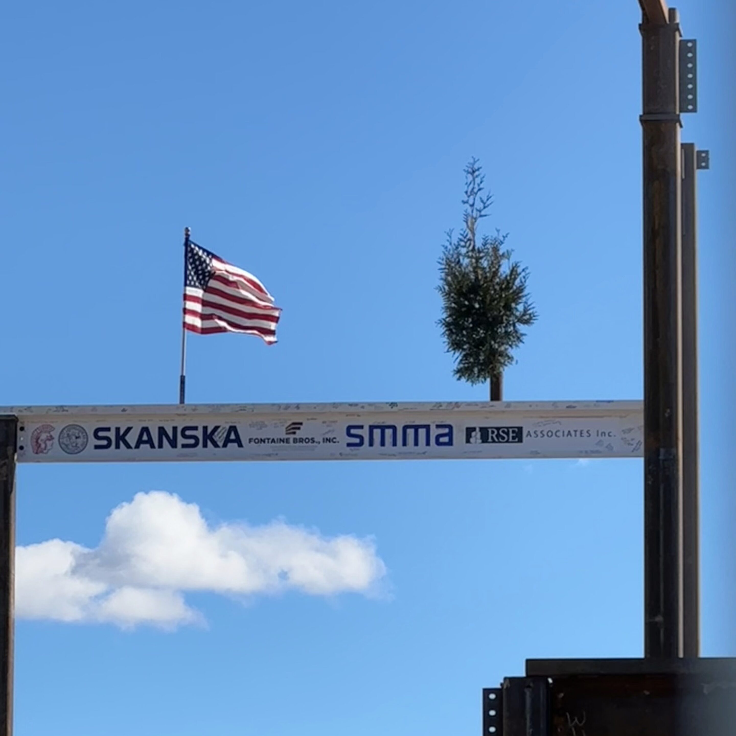 Topping out ceremonies, also known as “topping off,” are a tradition in the construction industry. In the United States, an American flag, a small evergreen tree or both are attached to the final I-beam, before it is hoisted into place. The origin of the practice is unclear, but it is known to have been in use in Scandanavia as early as the 700s C.E. as a way to appease tree-dwelling spirits who had been displaced by the construction.