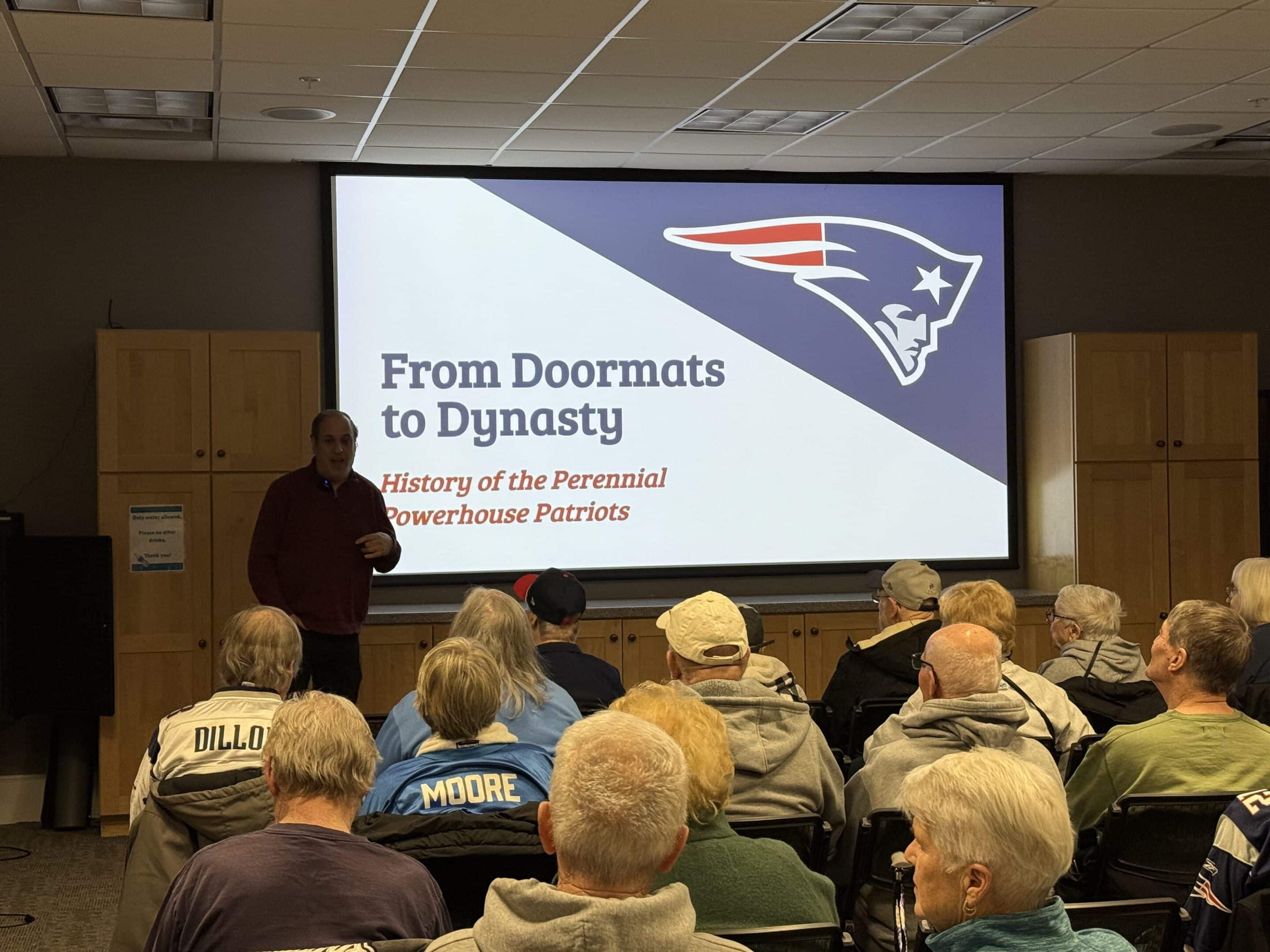 Marty Gitlin begins his presentation on the New England Patriots’ history.