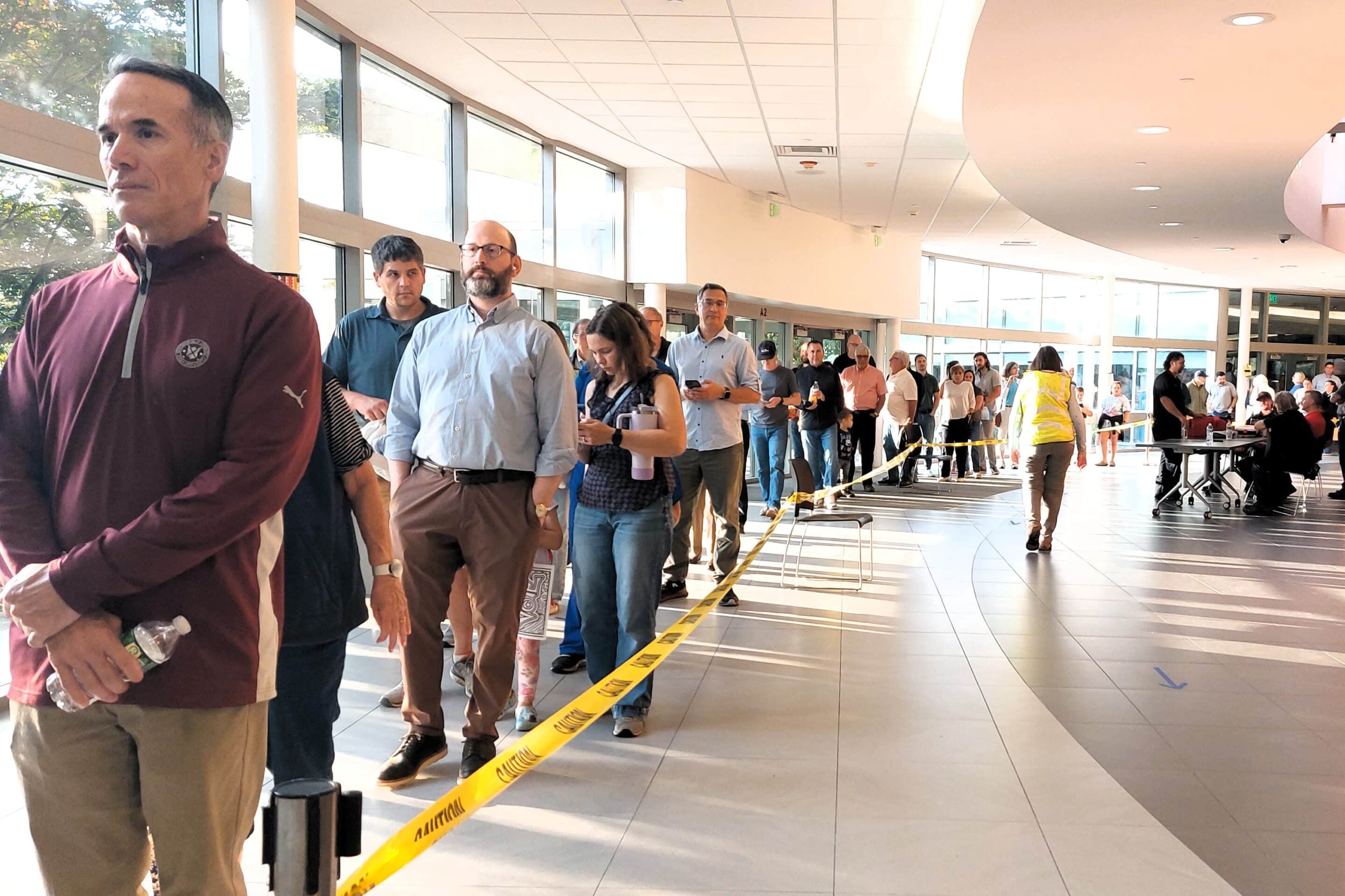 Longmeadow voters cast their ballots in a referendum on using a debt override to pay for the new middle school.
