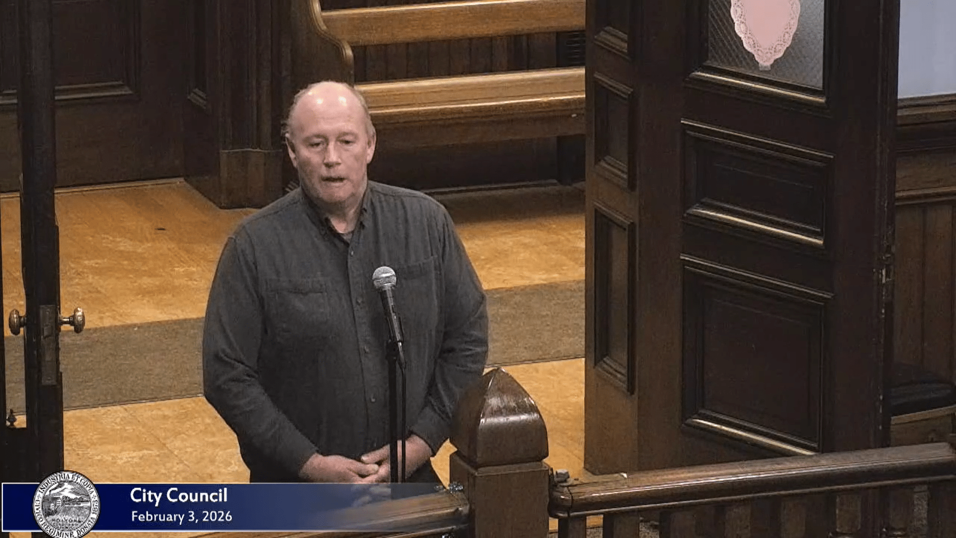Department of Public Works Director Michael Gallagher discusses the departments’ snow removal process during the Feb. 3 City Council meeting.