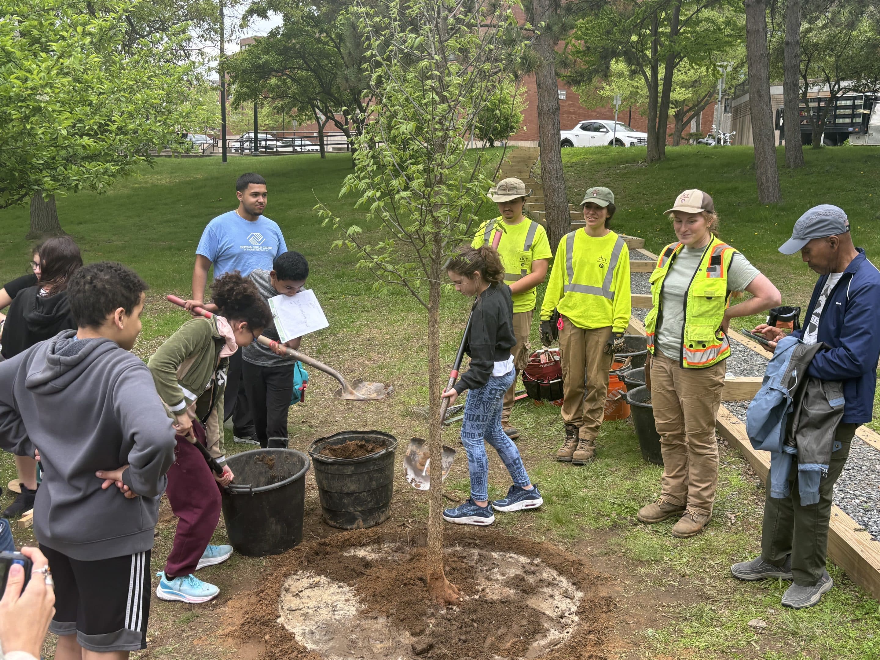 Members of the DCR also planted a tree with help from members of the Boys and Girls Club.