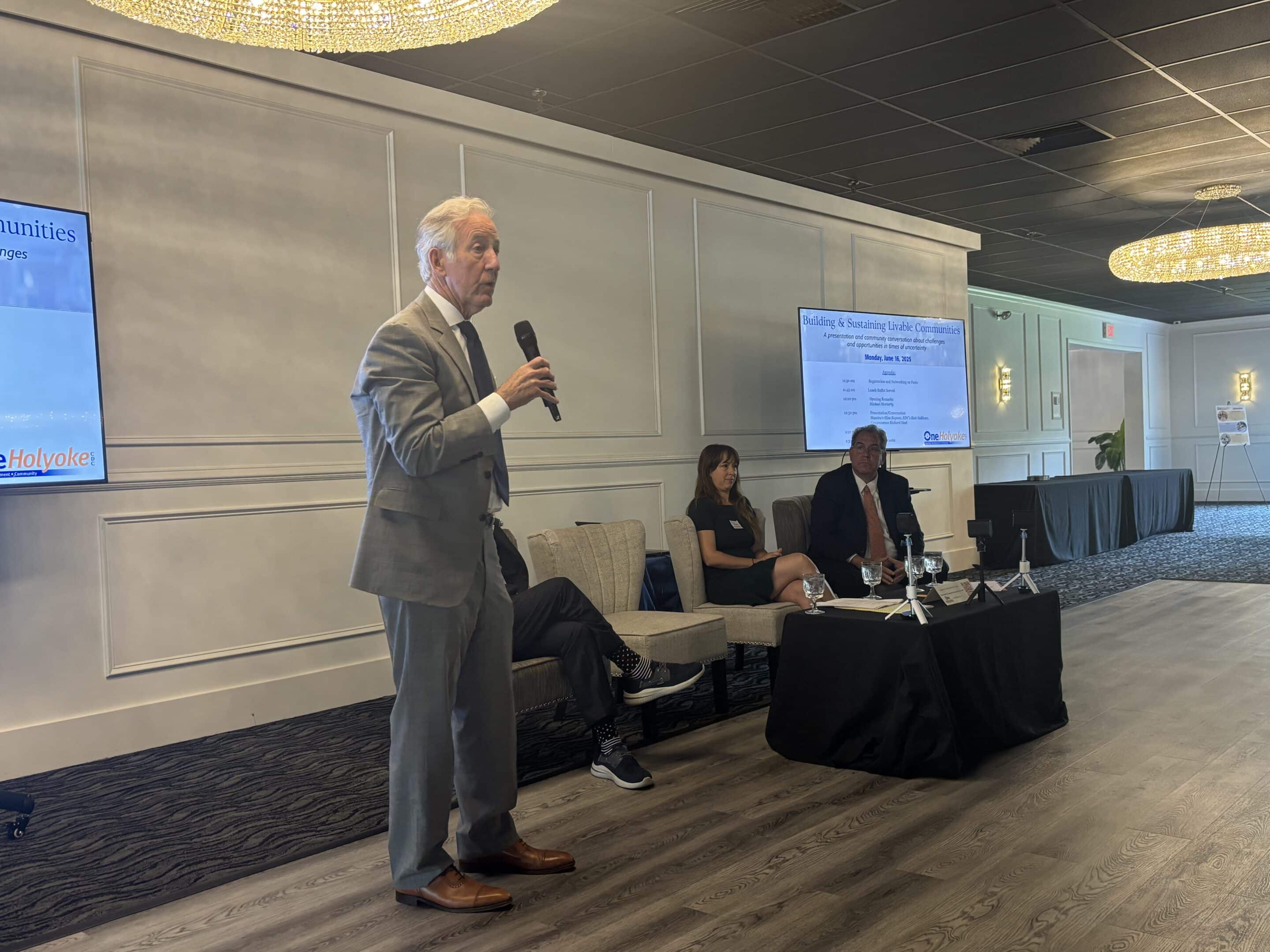 HOLYOKE — OneHolyoke CDC hosted a lunchtime event, “Building and Sustaining Livable Communities,” on June 16, featuring speakers U.S. Rep. Richard Neal, Rick Sullivan and Elise Rapoza, to discuss and address the housing crisis.