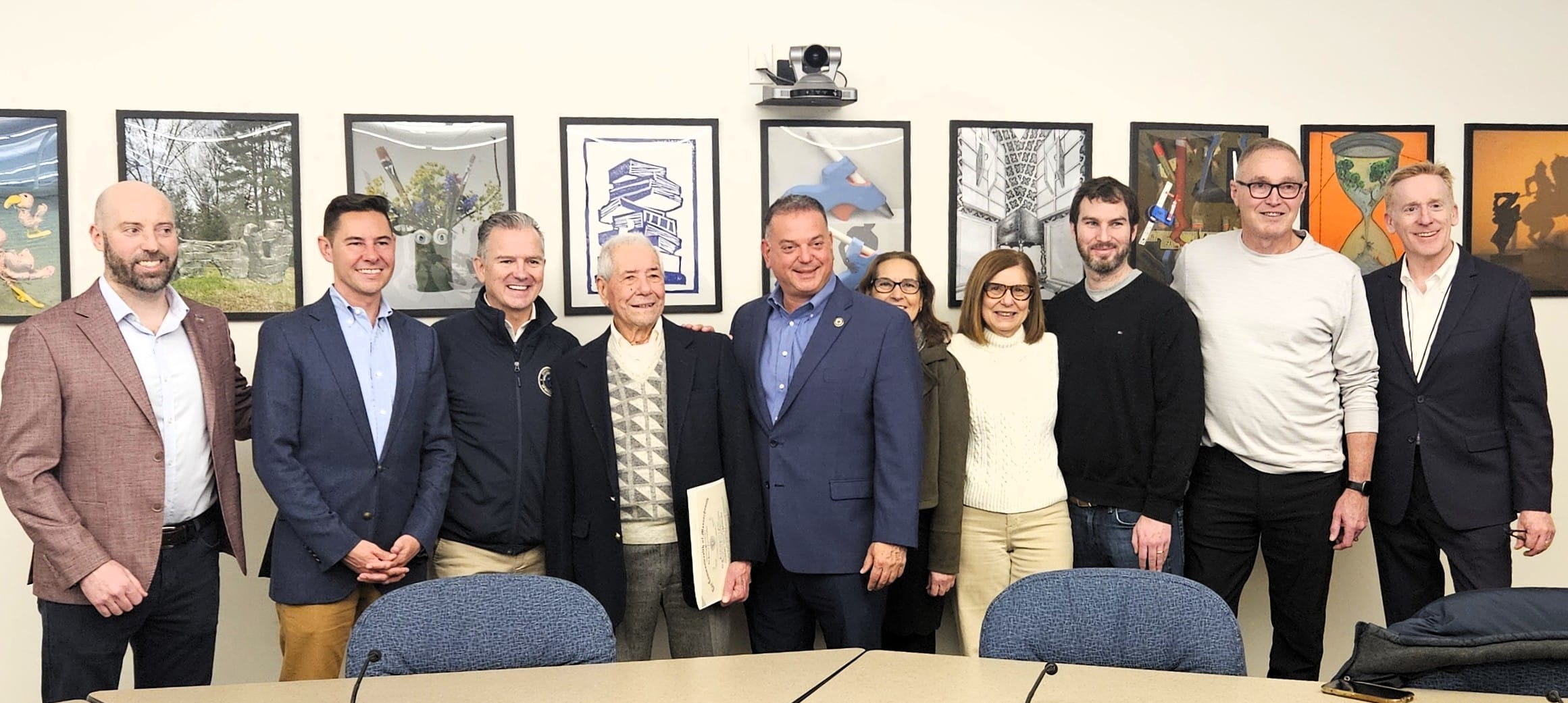Recently retired Longmeadow Public Schools employee Anthony “Tony” Granaudo stands with members of his family, state Sen. Jake Oliveira, state Reps. Angelo Puppolo Jr. and Brian Ashe, Select Board member Dan Zwirko and Superintendent M. Martin O’Shea.