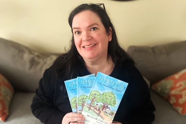 Melissa Cybulski holds copies of her debut children’s book, “Appleseeds: A Boy Named Johnny Chapman.”