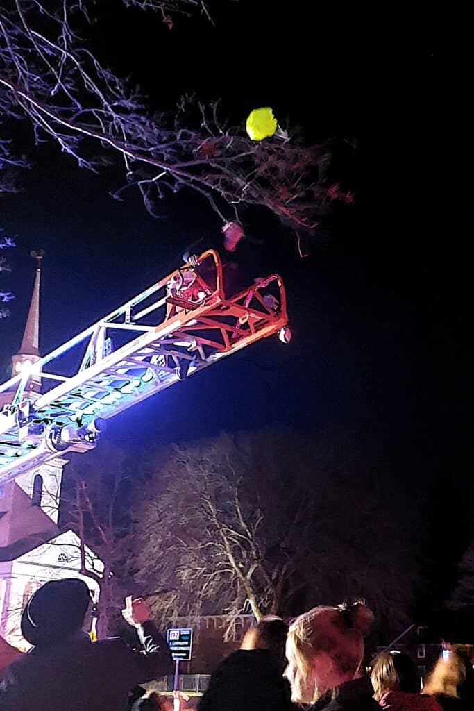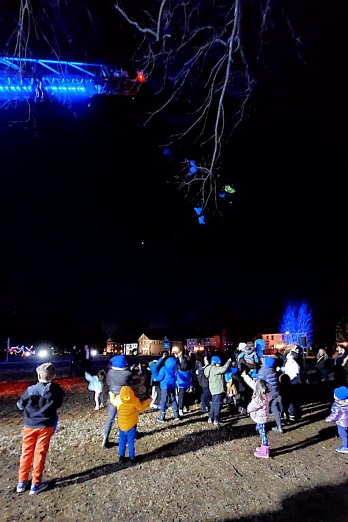 After the speakers had finished, children cheered as treats, known as gelt, were dropped from the raised ladder of a firetruck, gliding to the ground on colorful parachutes. Families finished the event by enjoying potato pancakes — latkes — and hot drinks.