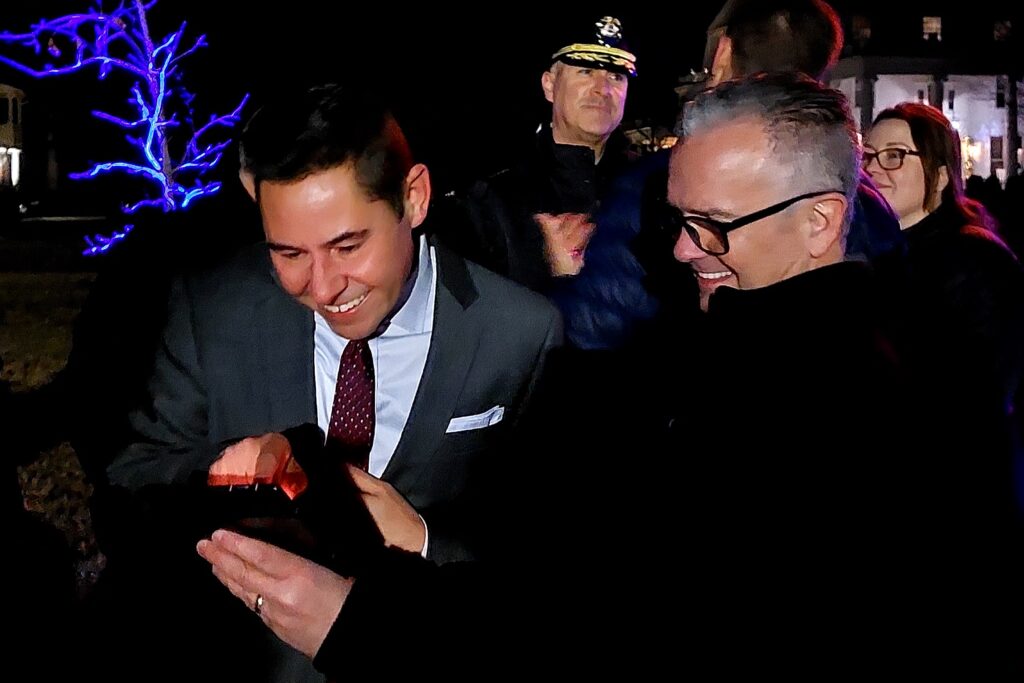 Select Board Chair Vineeth Hemavathi spoke more about the ongoing war. At last year’s menorah lighting, people gathered “in the midst of a great tragedy,” he said, remarking that a year later, the “tragedy” continues. He urged people to come together.