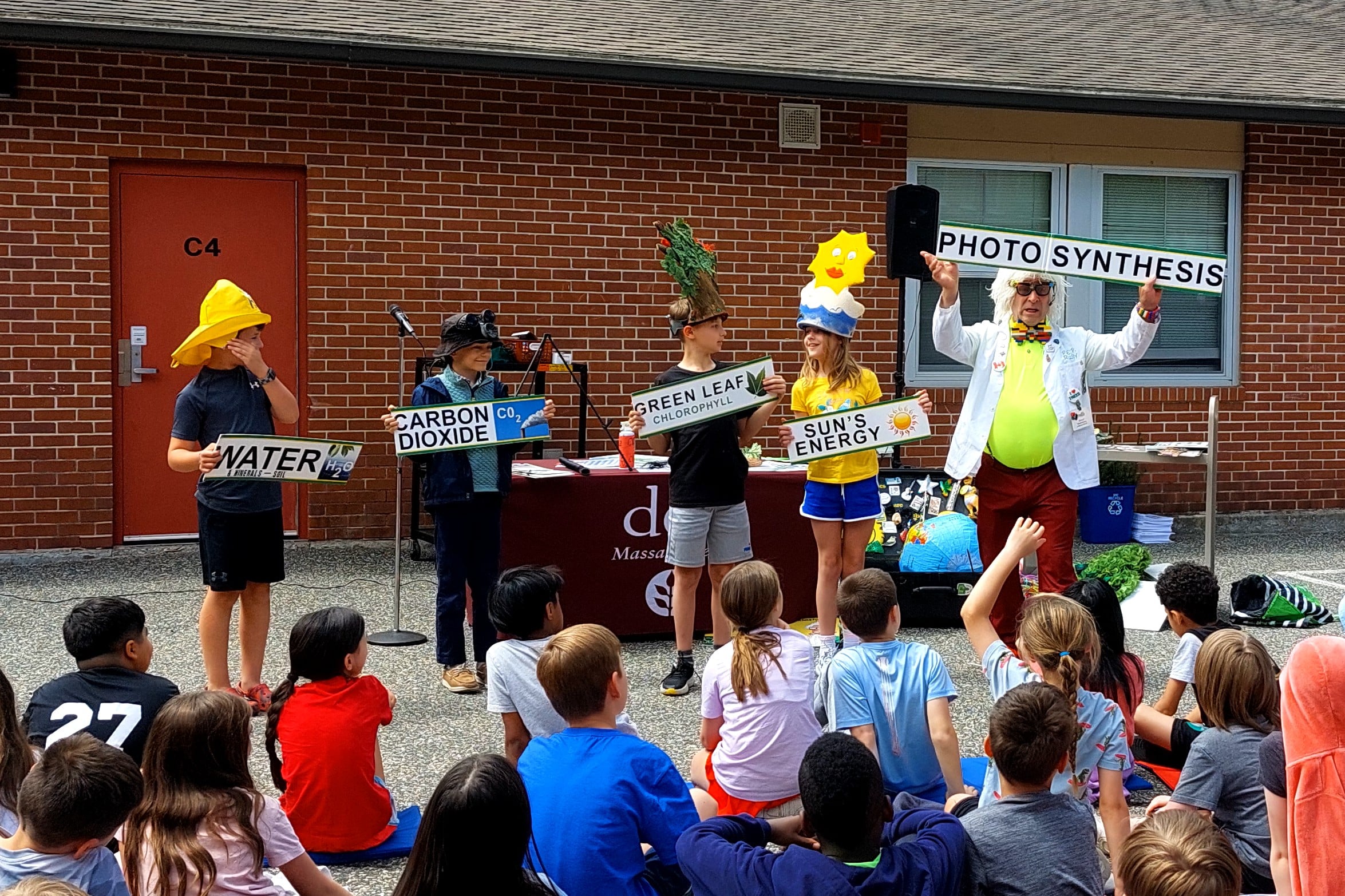 Kate Sleptov, Andrew Sleptov, John Azer and Jackson Lomma help Professor Pricklethorn teach about photosynthesis.