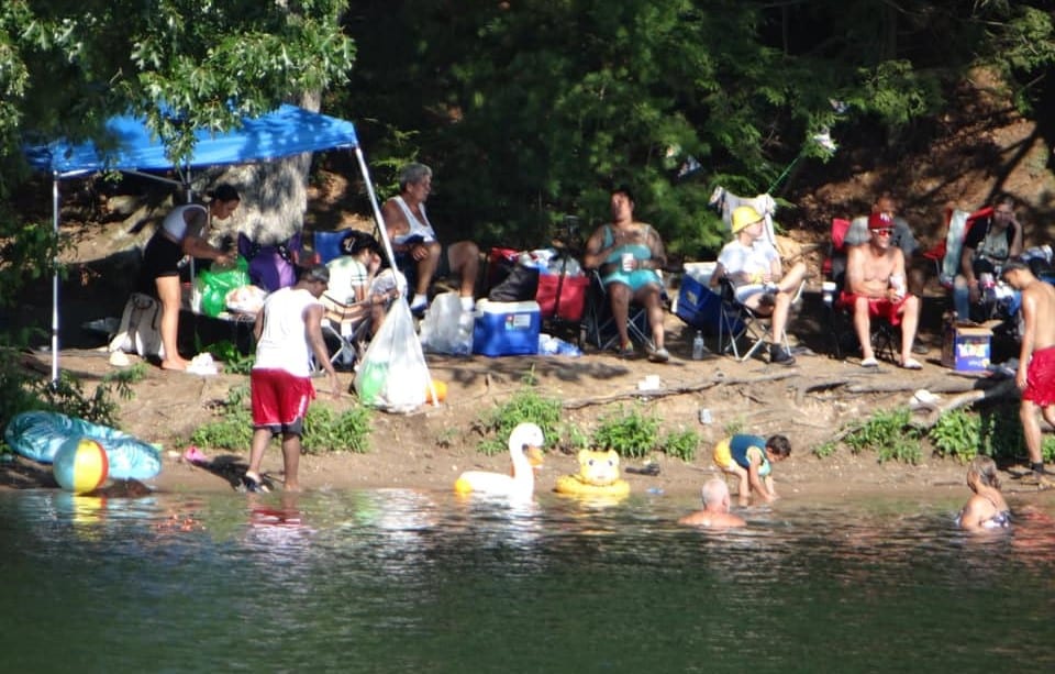 A social media photo taken by an unidentified Congamond Lake property owner shows a beach party on July 13 in the North Pond Conservation Area, which is supposed to be reserved for “passive recreation” such as hiking and fishing.