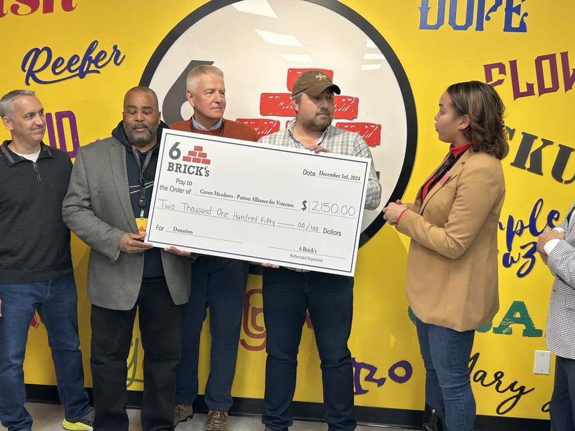 SPRINGFIELD — Government officials and other community members gathered on Dec. 3 to celebrate 6 Brick’s cannabis dispensary’s donation of $2,500 to the Patton Alliance for Veterans, a nonprofit organized by the descendants of famed WWI and WWII General George S. Patton Sr. and General George S. Patton Jr.