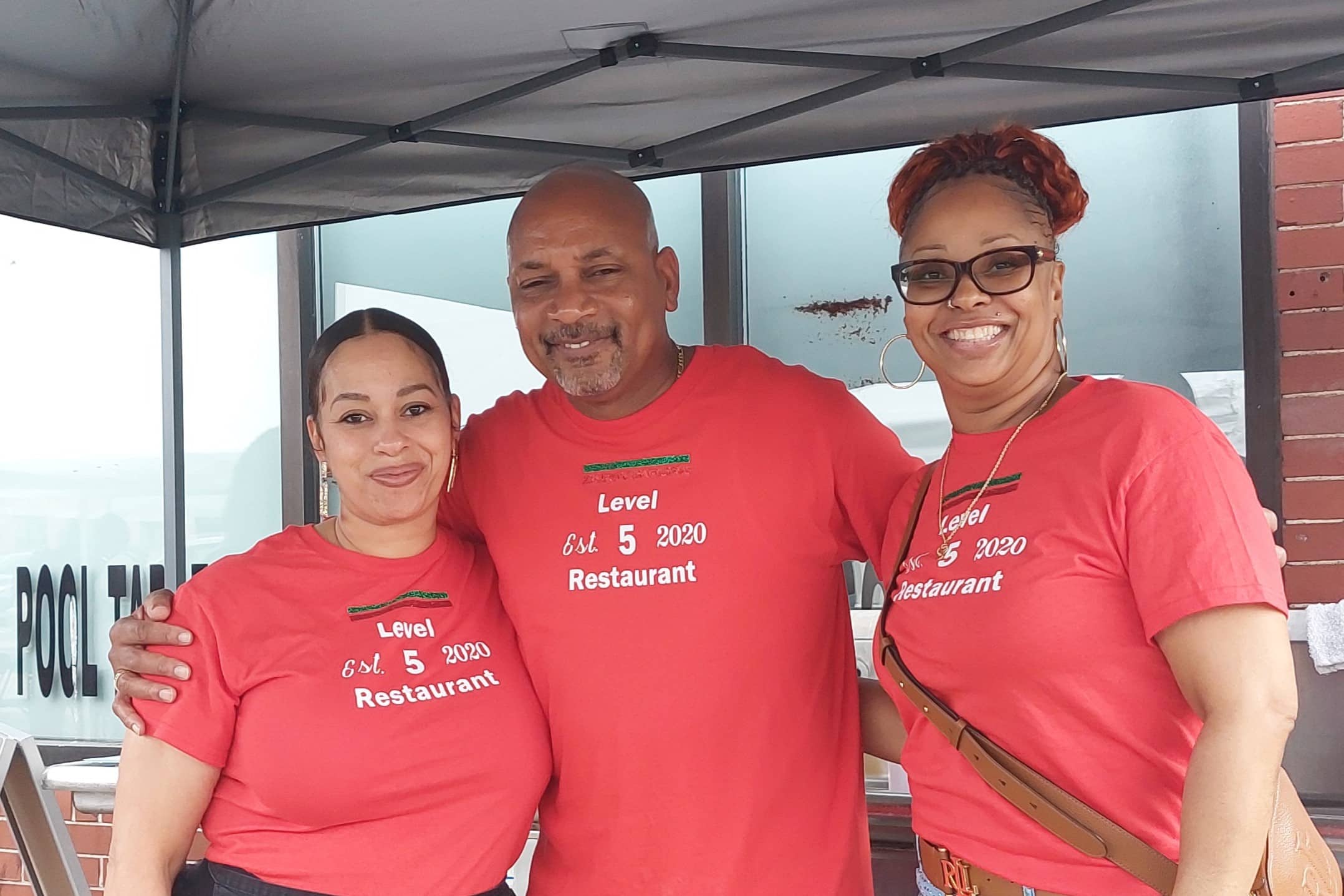 Stacey Lee, Rasan Jacobs and Lalaina Caudle of Level 5 Restaurant take time for a photo at the jubilee.