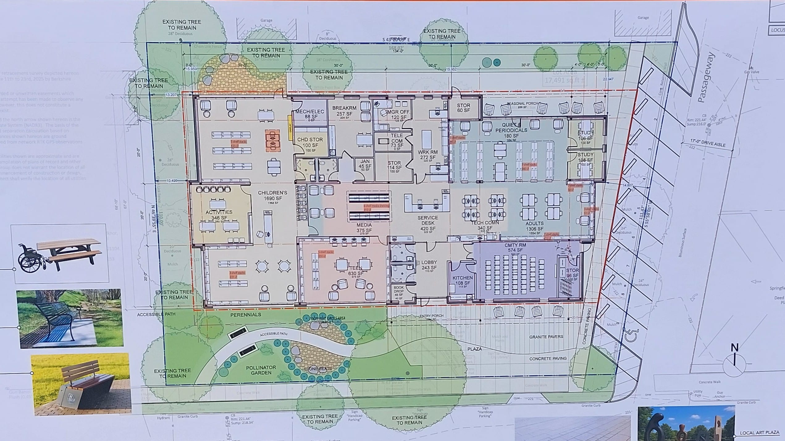The design phase of the project is complete. Rather than the 3,000 square feet of space now available, the new library will offer 8,500 square feet, with dedicated spaces for adults, teens and children. There will be a community room, an activities space and a seasonal porch.