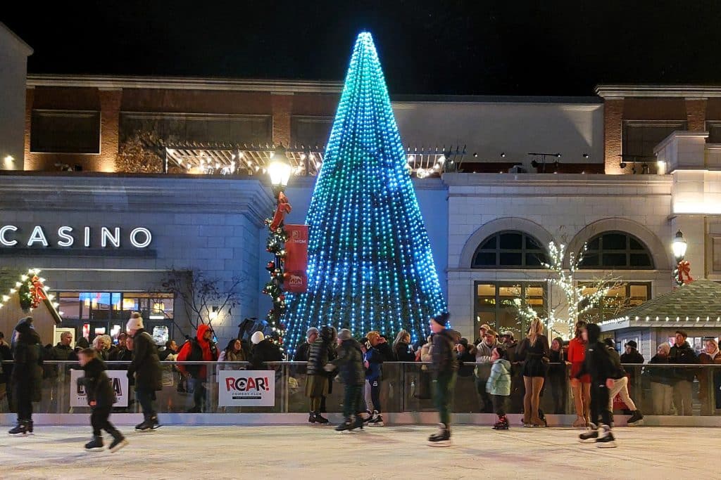SPRINGFIELD — With a countdown and the push of an oversized handle, Mayor Domenic Sarno, state Rep. Carlos Gonzalez, the MGM Springfield team and special guest Santa Claus lit the Christmas tree at the casino and officially opened its skating rink on Nov. 28.