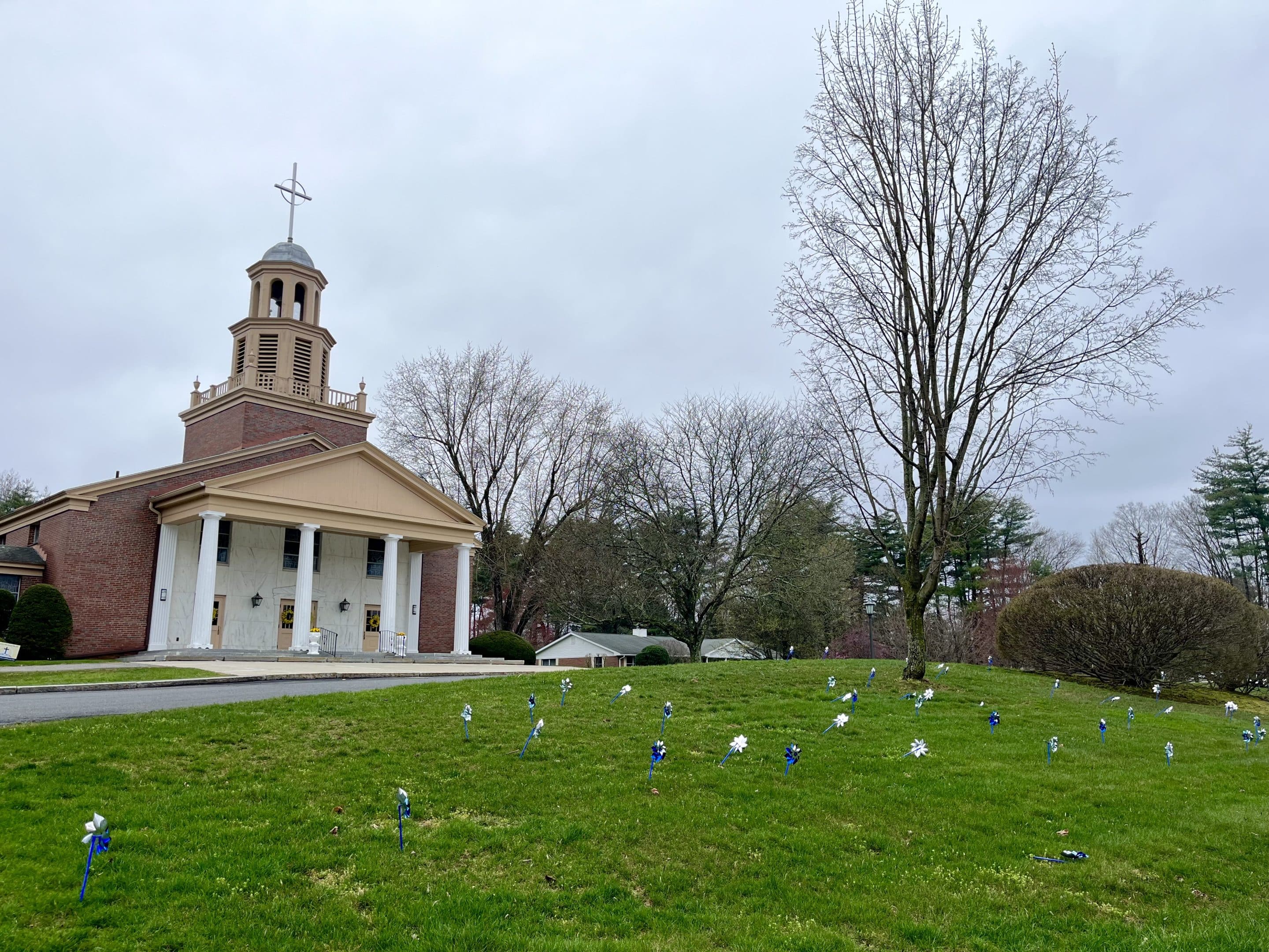 Pinwheels are spread out across the lawn at St. Patrick’s Catholic Church on Allen Street.