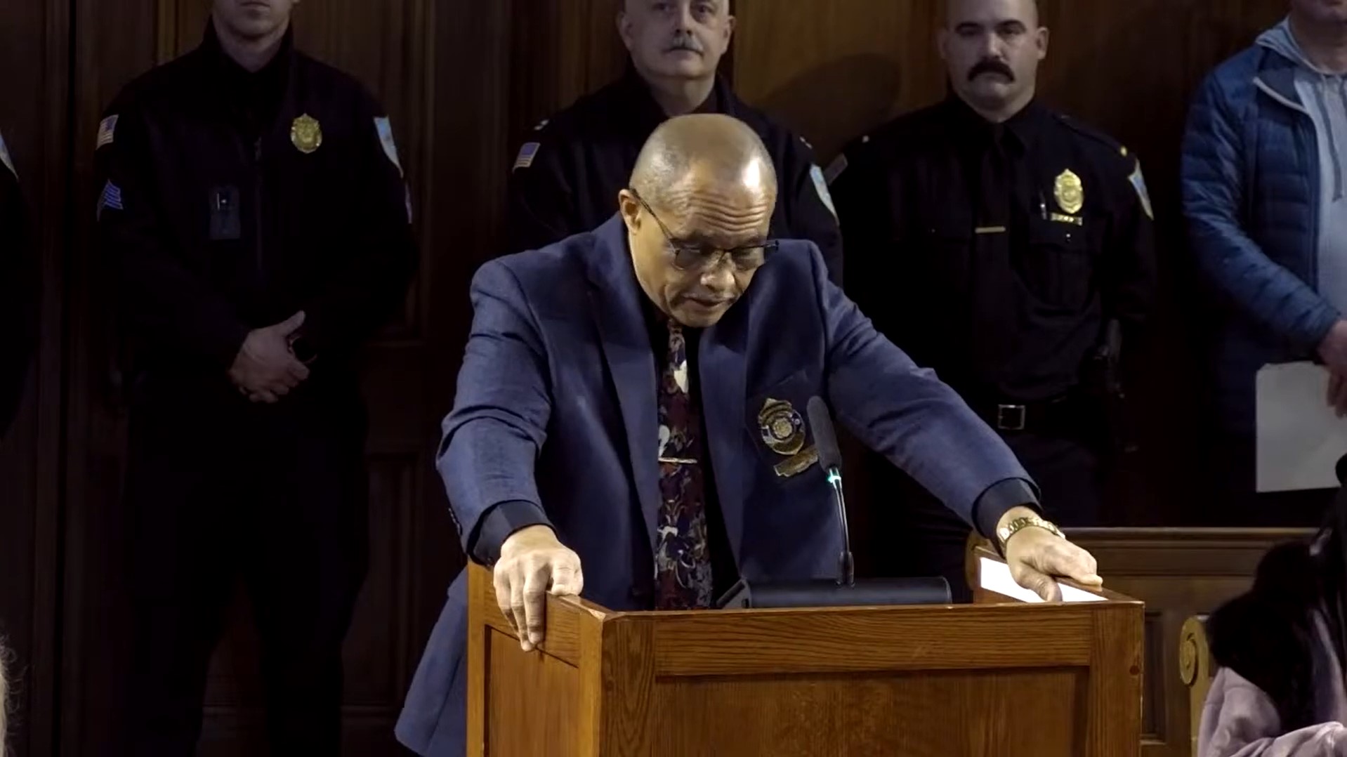 Police Superintendent Lawrence Akers was joined by members of the Springfield Police Department during the Feb. 10 City Council meeting to ask for the council’s approval of a funding package that upgrades the department’s technology.