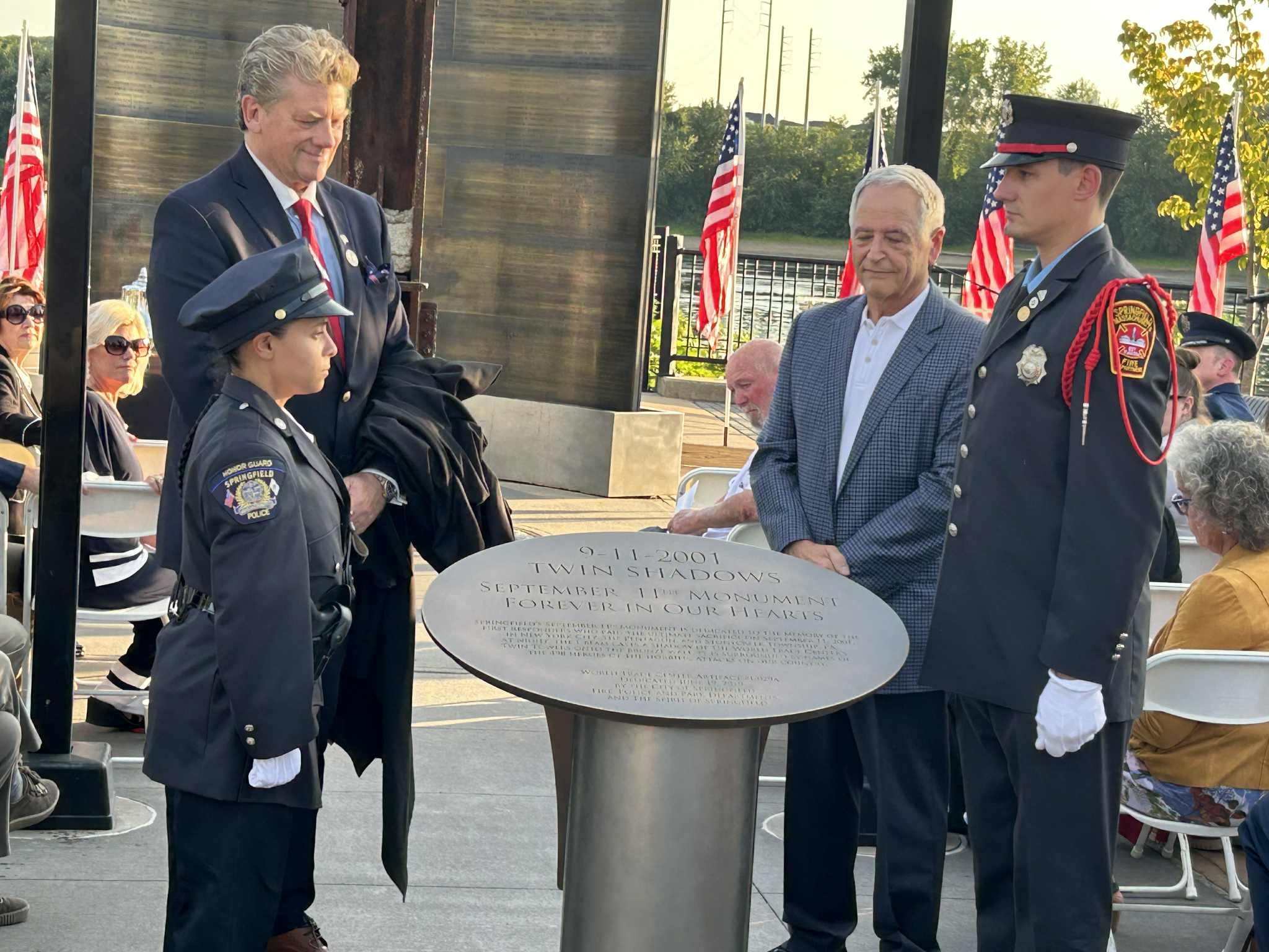 The city of Springfield unveils a kisok after announcing “The 9/11 Memorial Plaza” inside Riverfront Park.