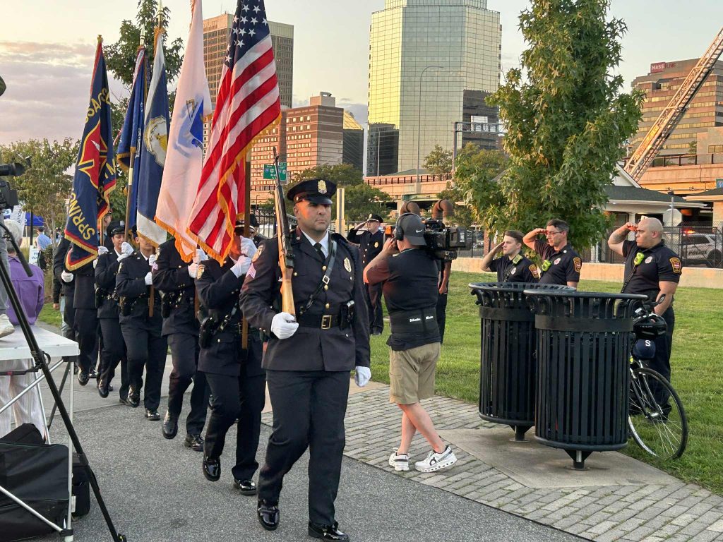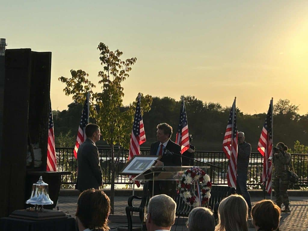 The ceremony also included a special announcement. In his remarks, Thomas Ashe — executive director of the Springfield Department of Parks, Buildings, and Recreation Management — announced that the site where the I-Beam sits is now named “The 9/11 Memorial Plaza.”