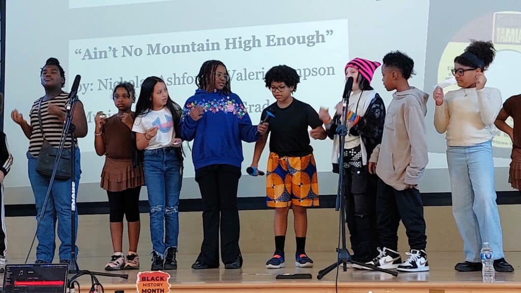 Third, fourth and fifth graders sing “Ain’t No Mountain High Enough” by Marvin Gaye and Tammi Terrell. Reminder Publishing photo by Sarah Heinonen
