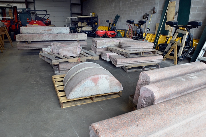 Despite the reports of those who said the bench was destroyed, the bench is currently sitting in sections on half a dozen pallets at the yard.
