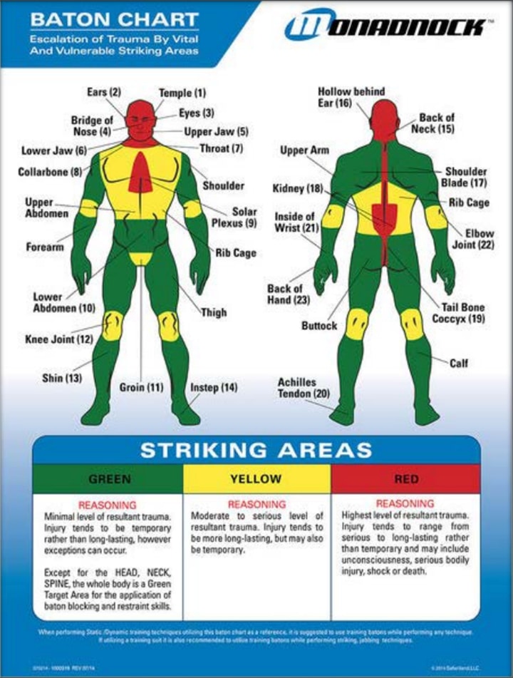 Level 3 includes hands-on restraint techniques, including wrist locks, finger grasps and “take down pressure points.” Baton restraints, the use of oleoresin capsicum munitions or aerosols, commonly known as “pepper spray,” and use of a Taser energy weapon directly against a person’s body are also included in level three. These are used if a person adopts a “posture of resistance” or the officer perceives the circumstances as “volatile.”