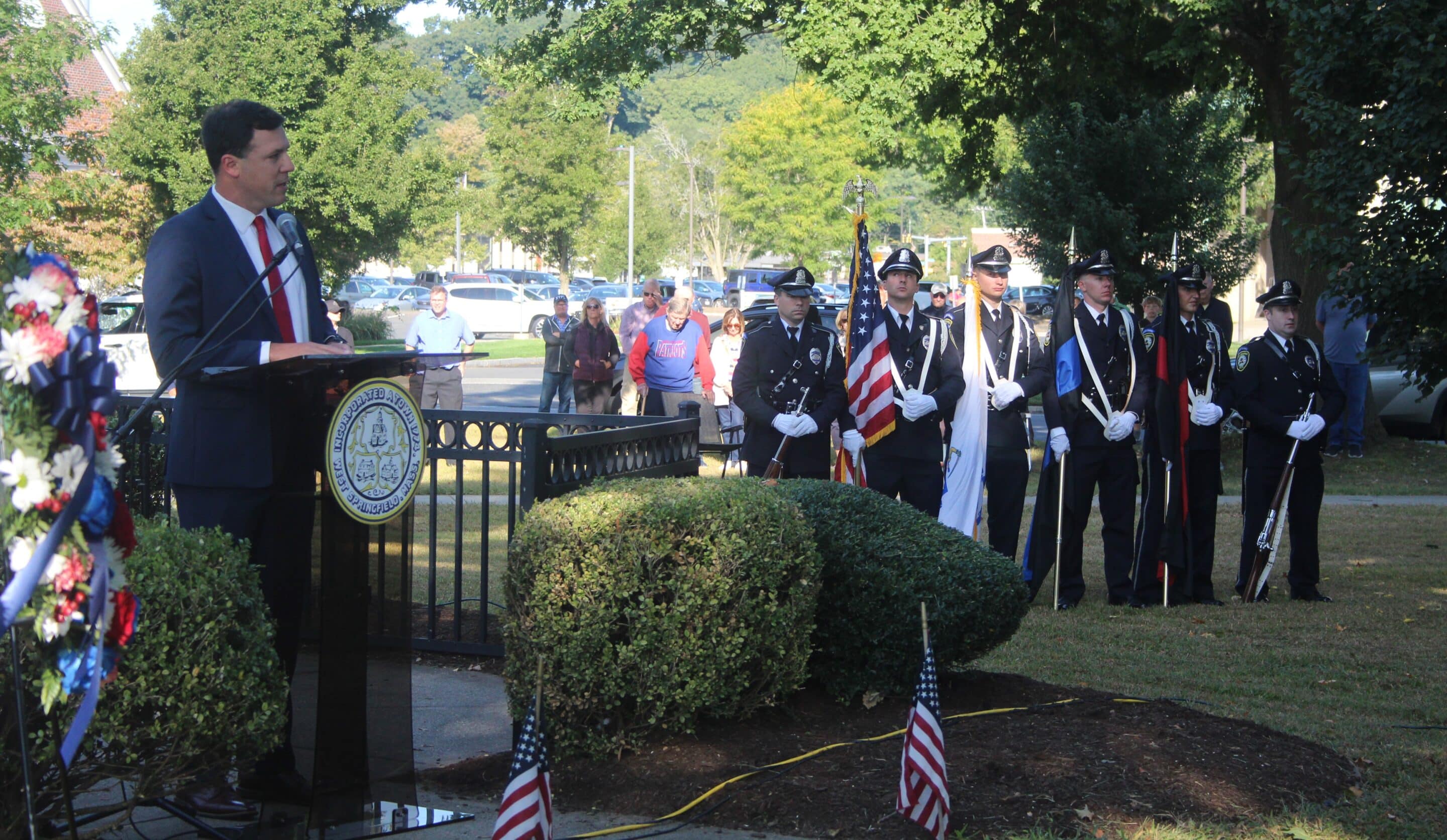 Speakers honored the ordinary citizens and first responders who performed acts of courage and heroism that day, as well as those who enlisted and fought in the War on Terror that followed.