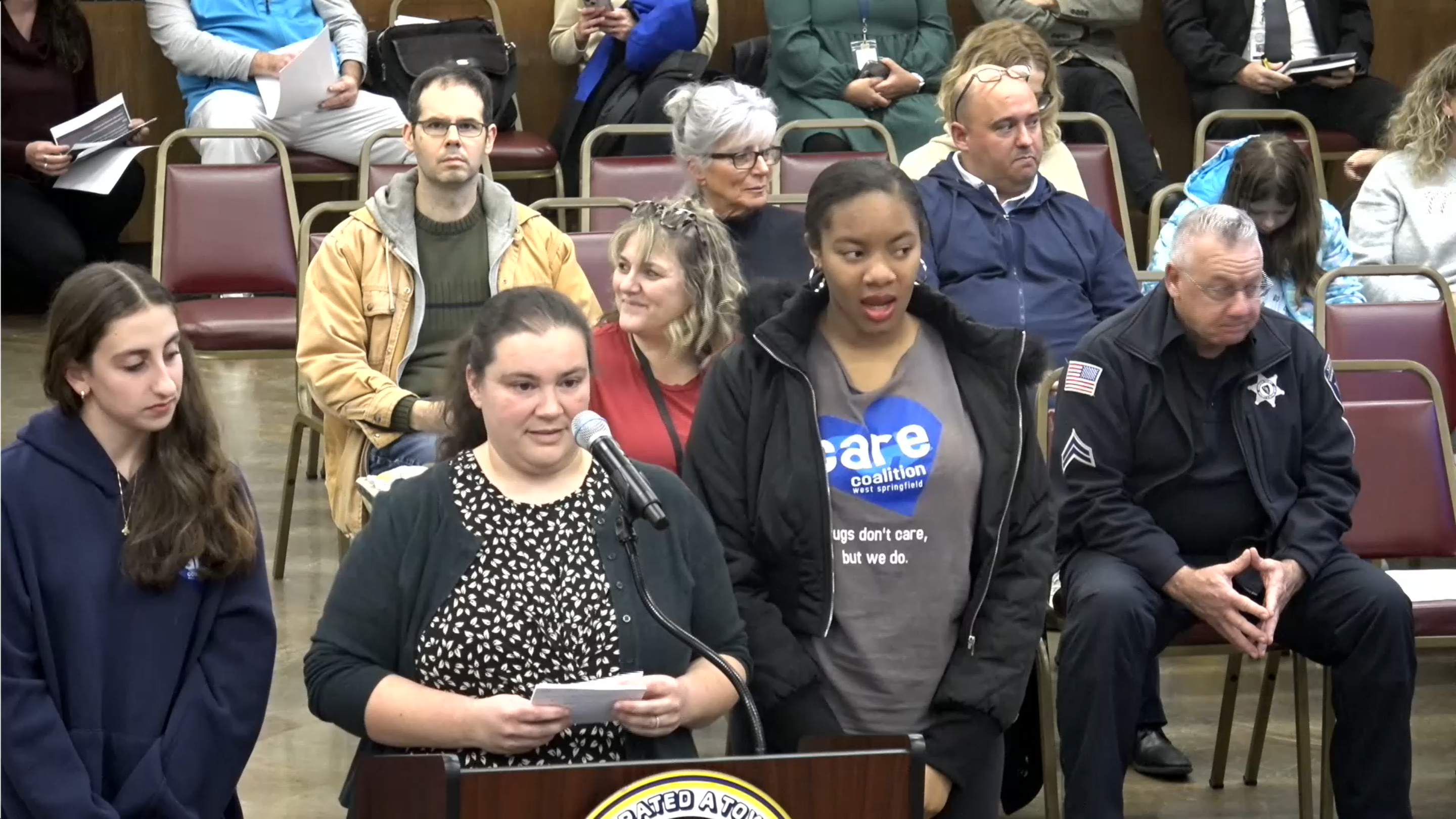 Members of West Springfield’s CARE Coalition speak to the West Springfield School Committee on Dec. 9.