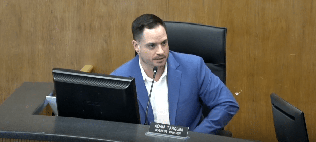 Chief of Finance and Operations Adam Tarquini details the budget at the hearing on March 24.