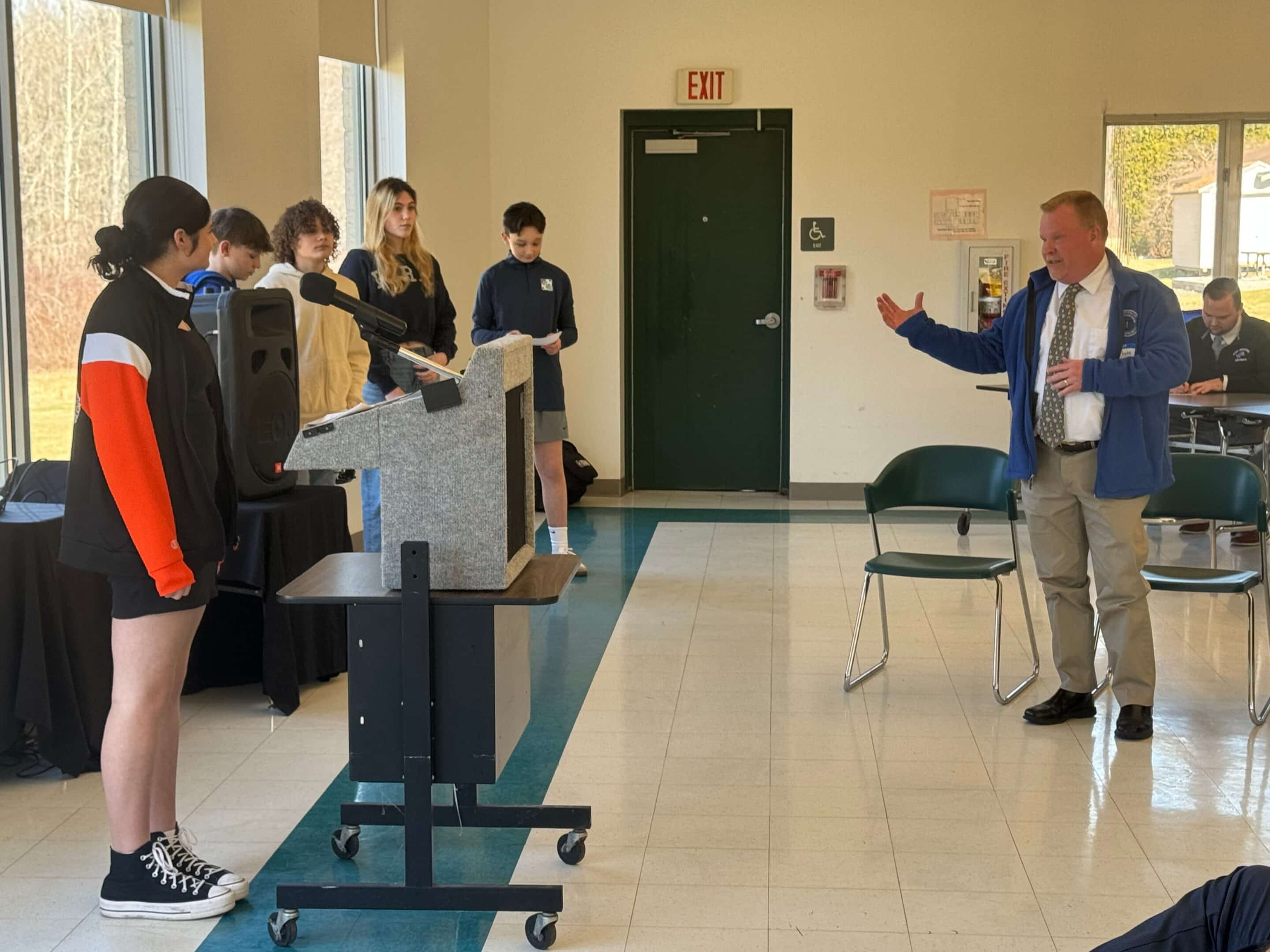 The day opened with students in the school’s culinary arts class serving visitors with treats while members of a financial literacy class were also available to chat with visitors. The group was then treated to a performance from the school’s choir before heading to the school’s cafeteria where two students spoke of their experiences at White Oak and how the school has given them the confidence and opportunity to succeed in school.