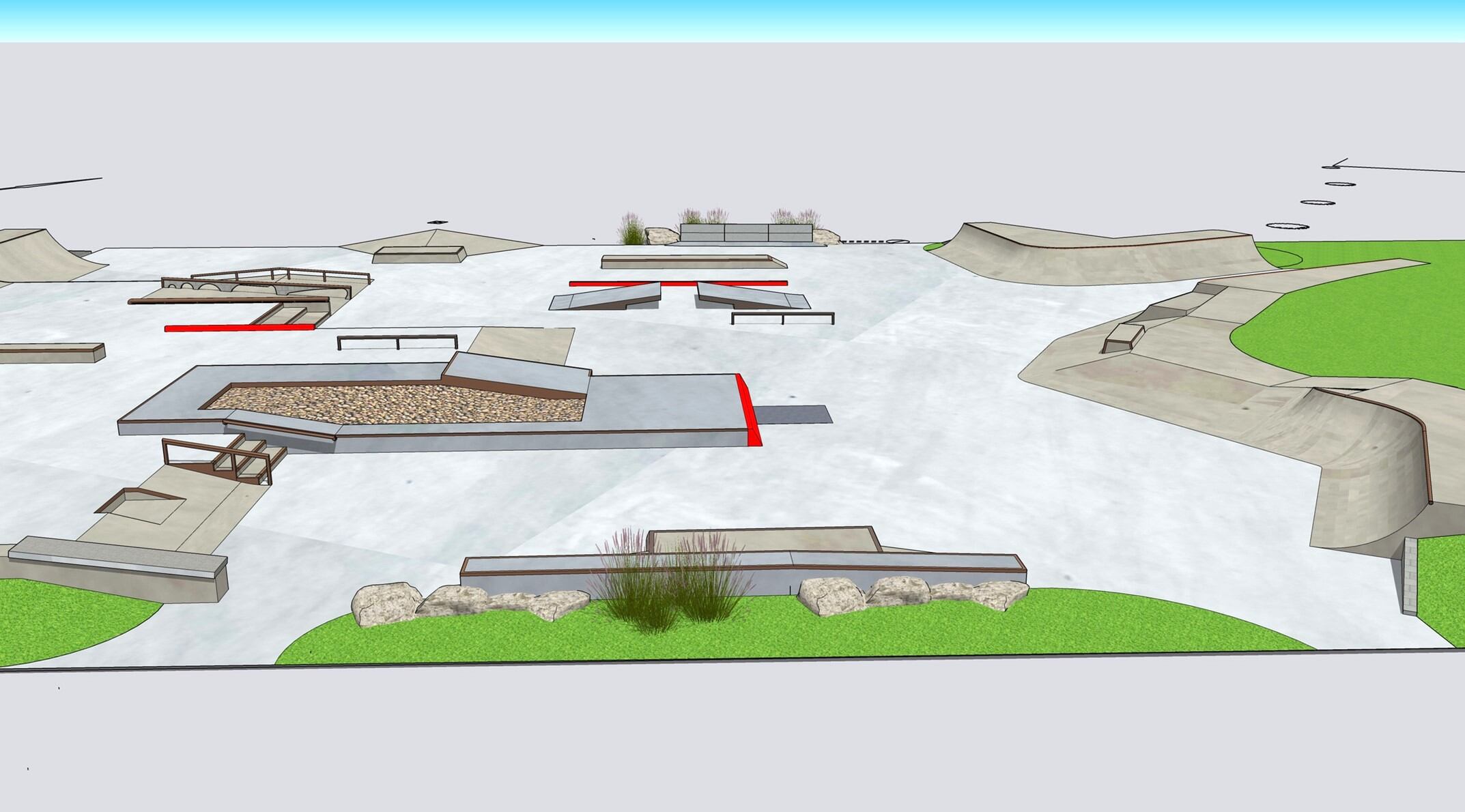 Horizontal view of design for new skate park in Westfield by the Platform Group.